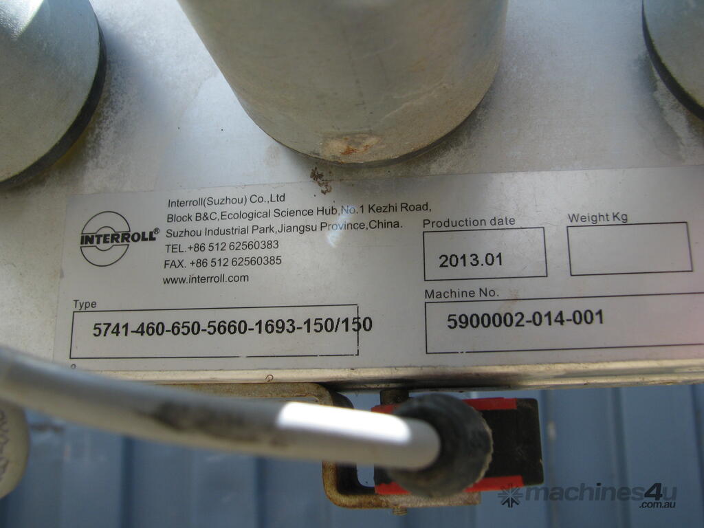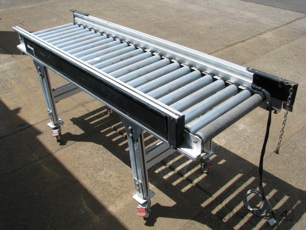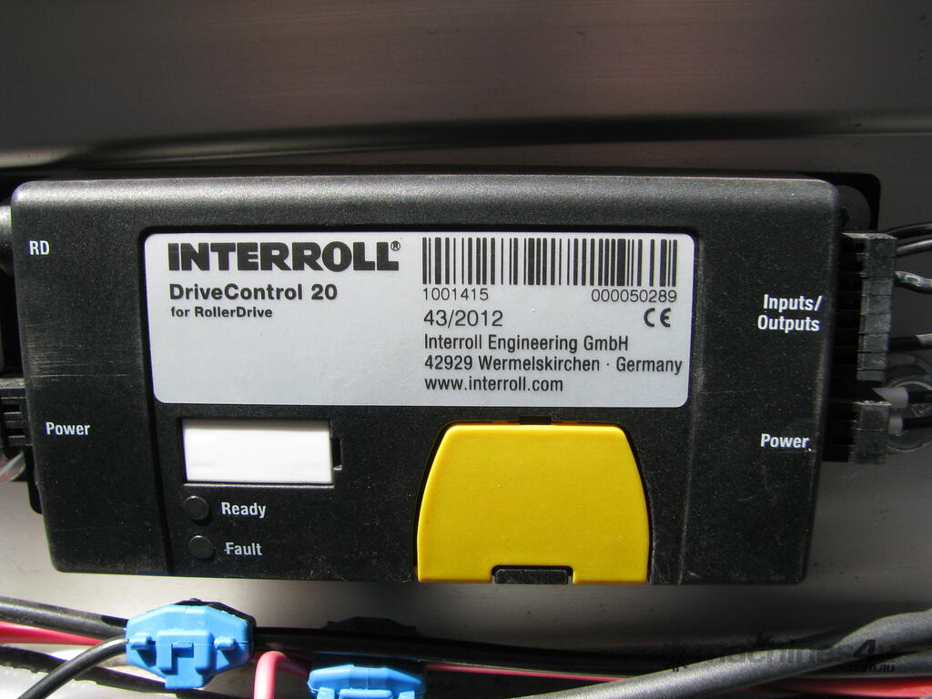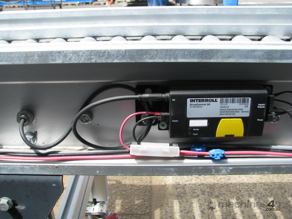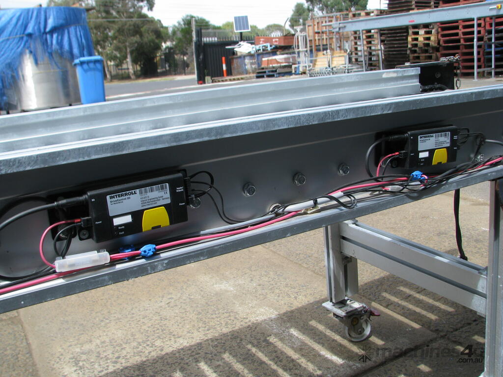 It is powered by 2 internal Interroll motor rollers. Each drives a section of rollers via belt.