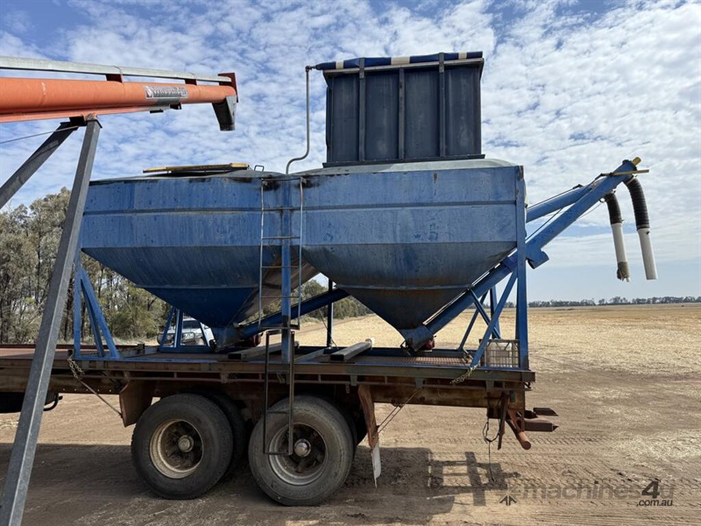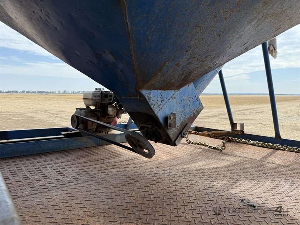 Inverell Engineering Grouper. Modified to hold approx 7T of Barley & 6T of Fert. Selling due to upgraded planter. Extension has roll over tarps. 2 x Honda motors. Located at Pallamallawa NSW, availalbe at MRE Auctions online sale.