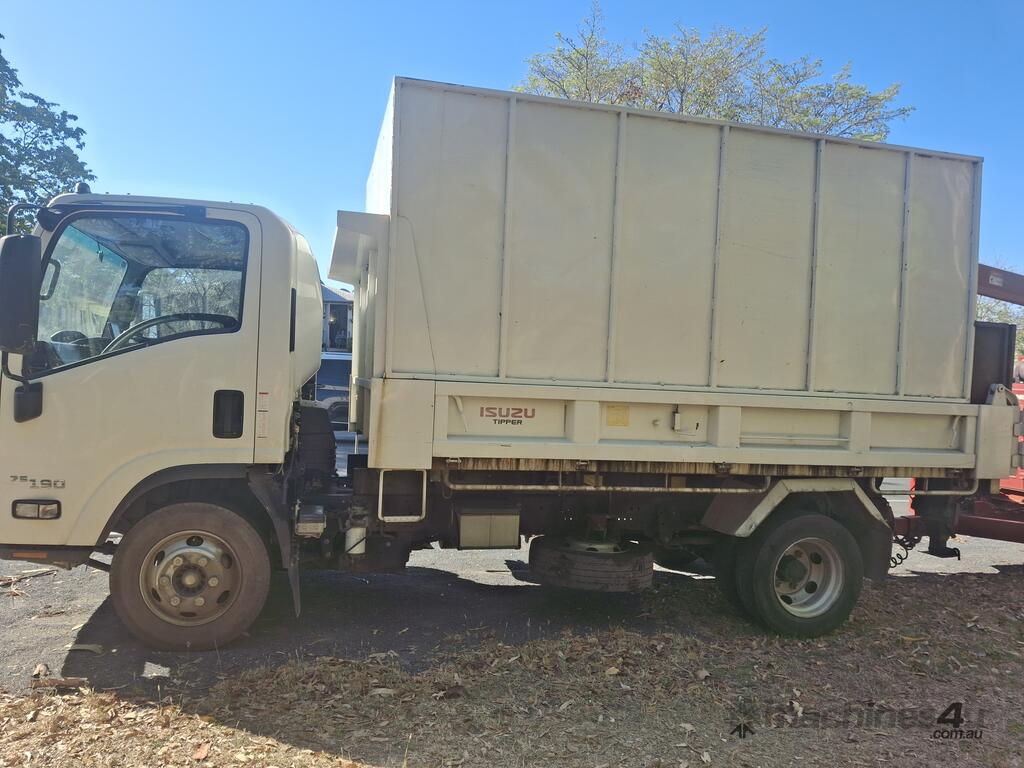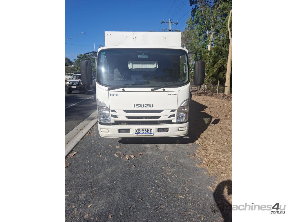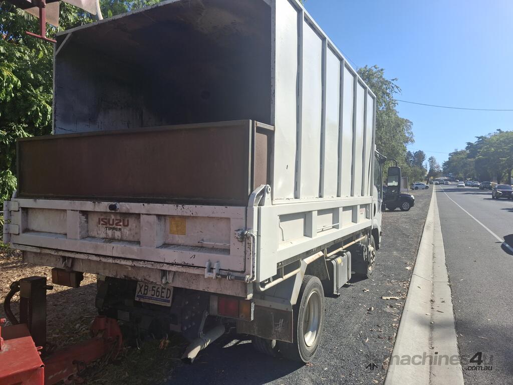 Isuzu npr tipper truck. has a tipper bin with removal wood chip bin mounted on top. Bin can be removed for dirt deliveries or excavator business. has a pintel hitch for towing woodchipper and will be sold with a standard tow hitch as well. Tow rating of 4.5 tones. Has large modern display with Bluetooth technology and reversing camera built in for quick hook up or just clear reversing. comes with seat covers and large rubber floor mat. Truck has aaround28466 kms on current rwc. Speedo slightly higher as truck still does odd weekend job. Honest reliable truck ready to go.