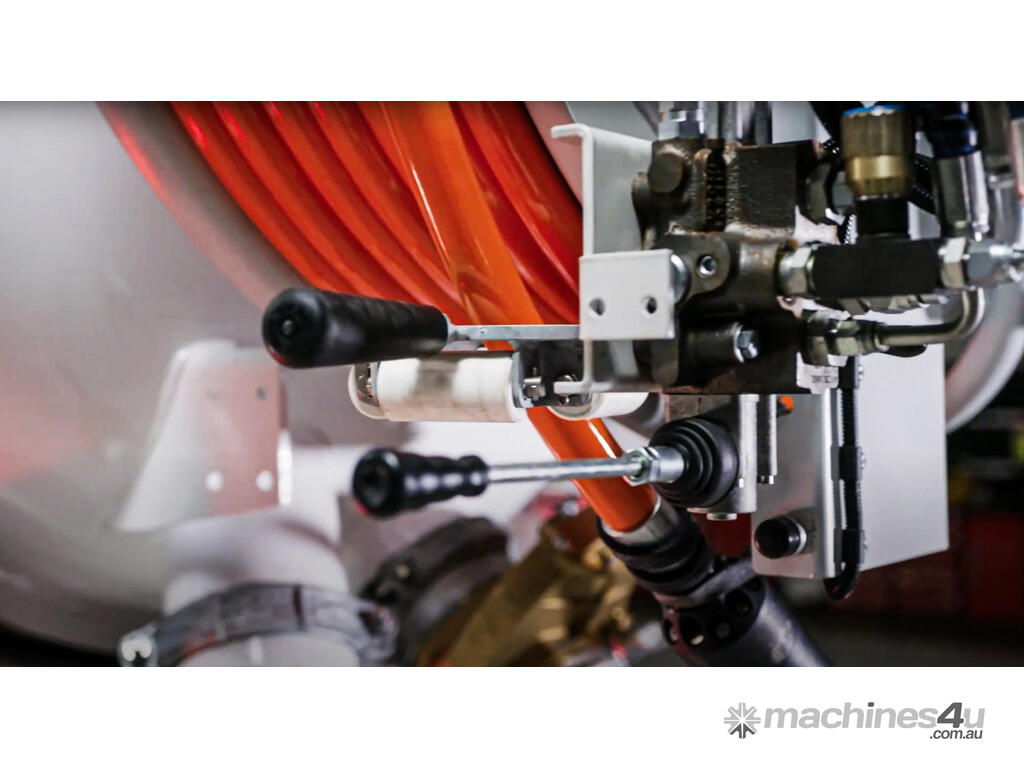 - Moro hydraulic hose reel with swivel and hydraulic reel in and out, holds 180m 3/4" or 120m 1" hose with drain cleaning nozzles