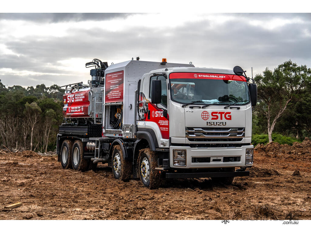 BRAND NEW 2024 ISUZU FYJ 300-350 AUTO 8X4 CAB CHASSIS WITH NEW VACUUM BODY + JETTER COMBO DRAIN CLEANING UNIT - TRUCKS & MODULES IN STOCK NOW!