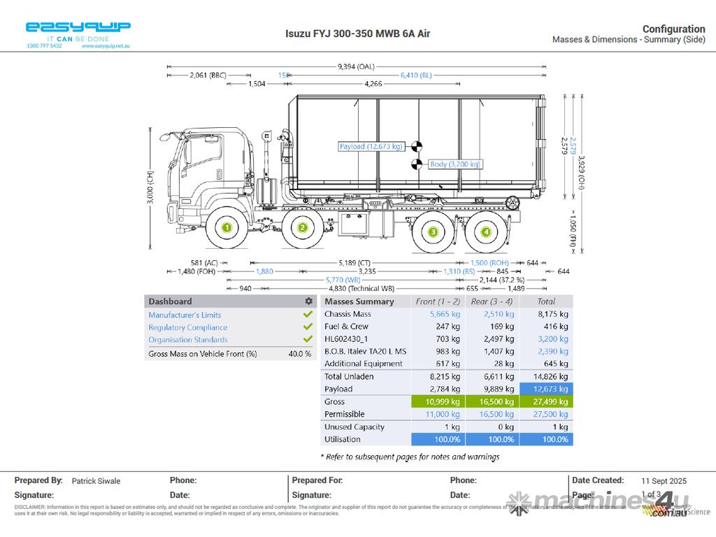 Never loaded a bin, purely been used for a demo truck at waste shows to launch the new partnership with B.O.B Italev and Easyquip.