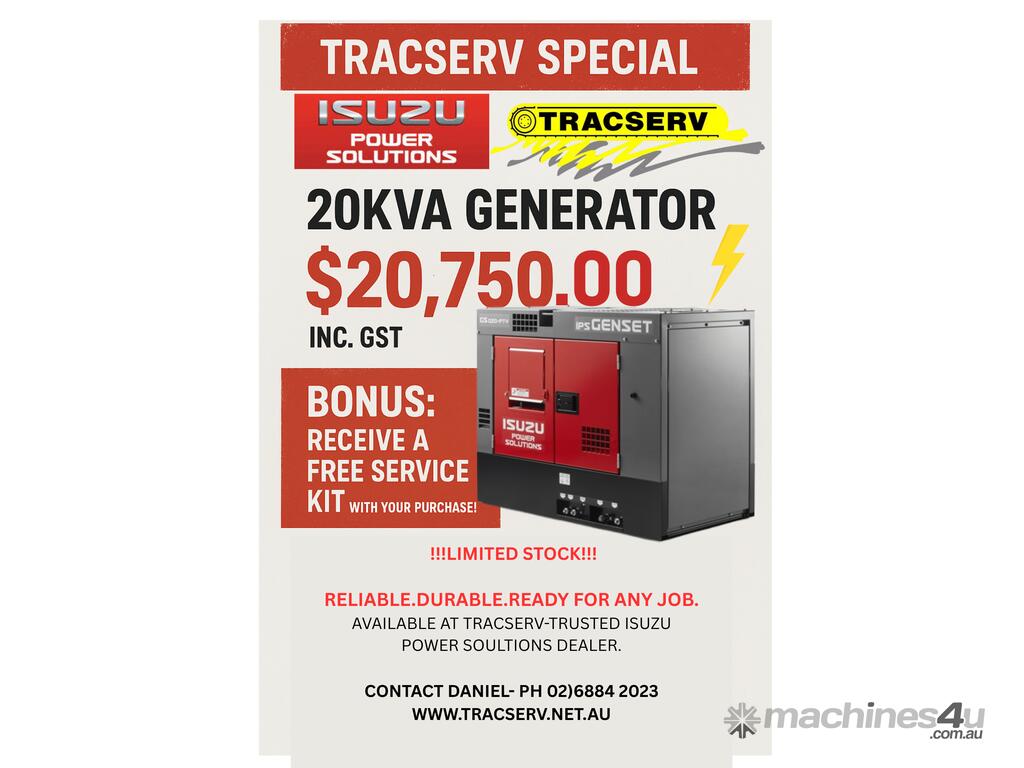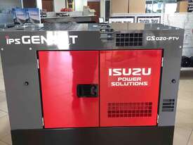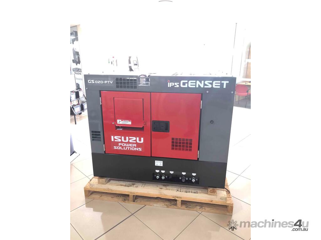 Isuzu Power Solutions GS020-PTY genset is ready to work, this diesel-powered unit has single phase and 3 phase outlets mounted and ready.