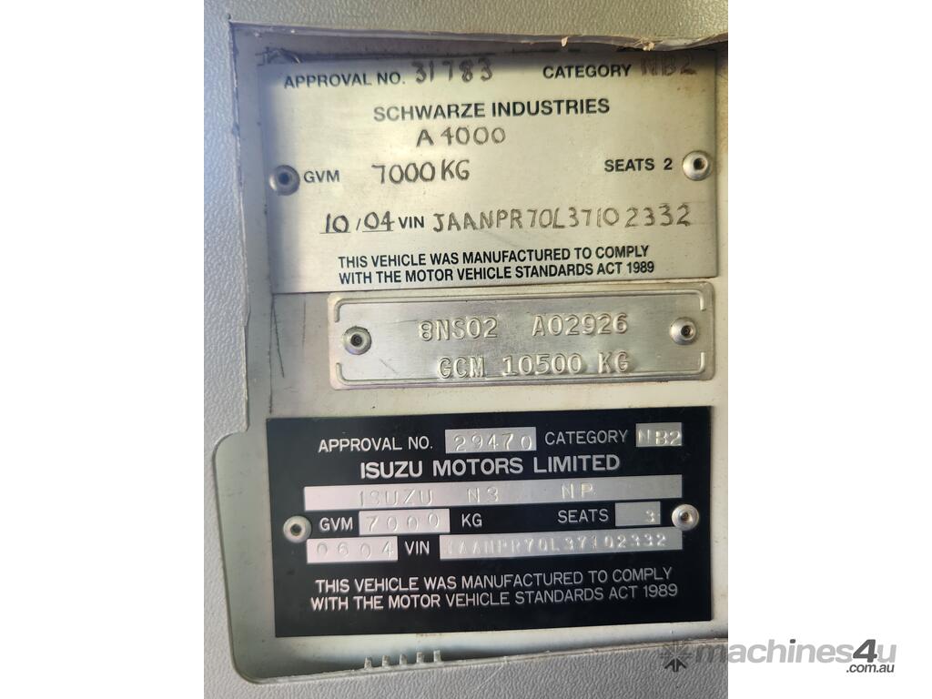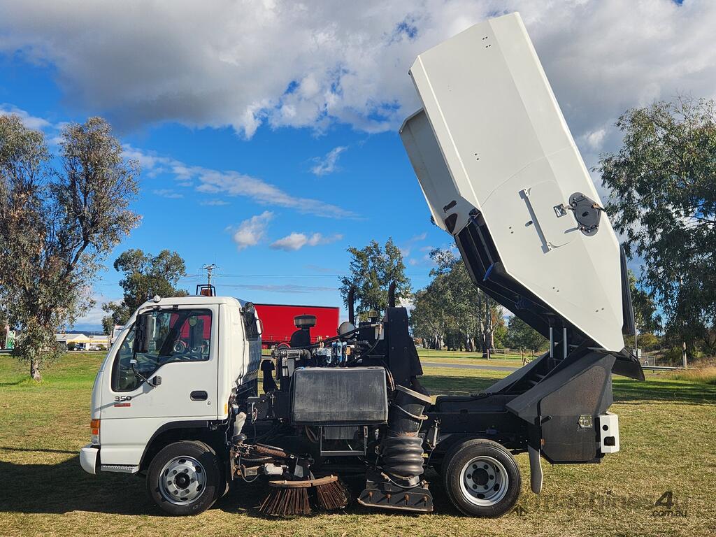 2004 Isuzu NPR350 4x2 Automatic with Schwarze A4000 Street Sweeper. Ex Council with only 91,240 Kms