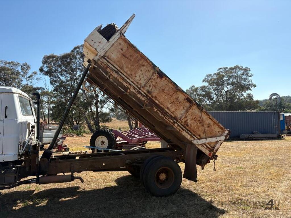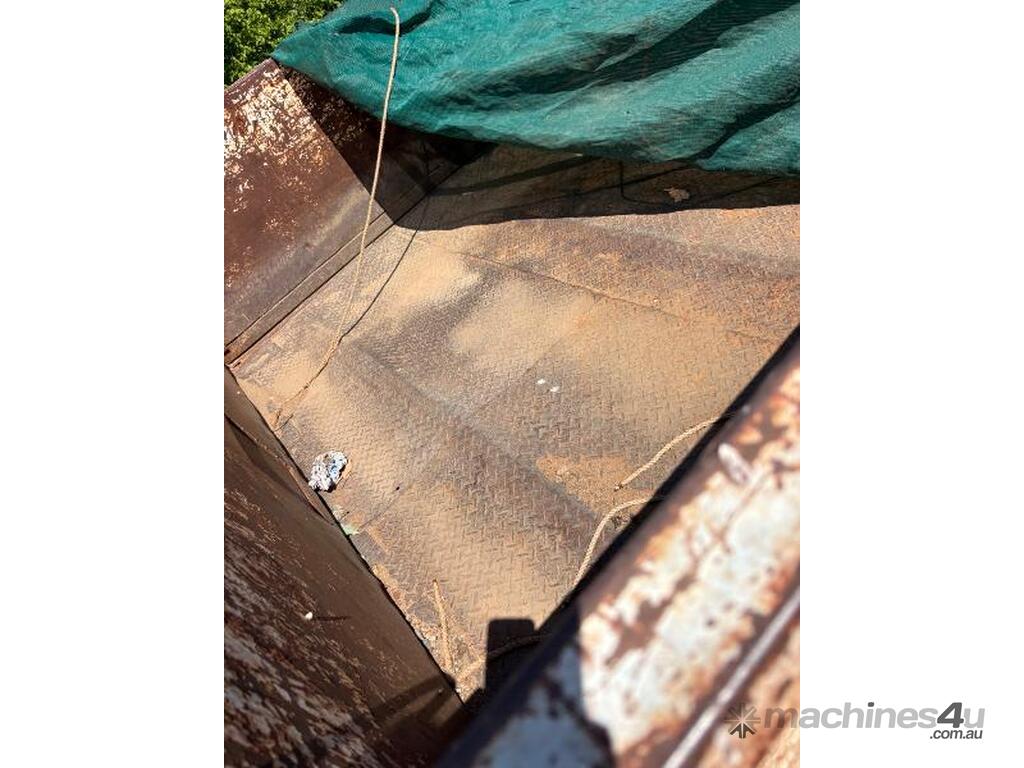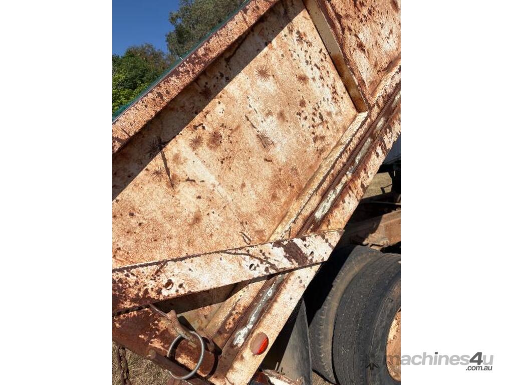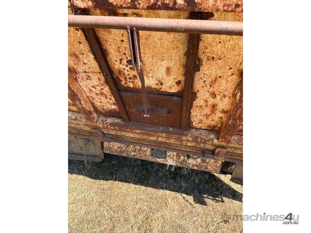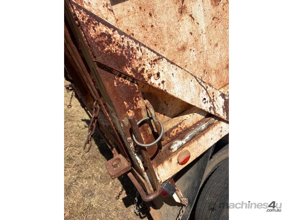 Tipper working, grain shoot, and tail gate swings open.