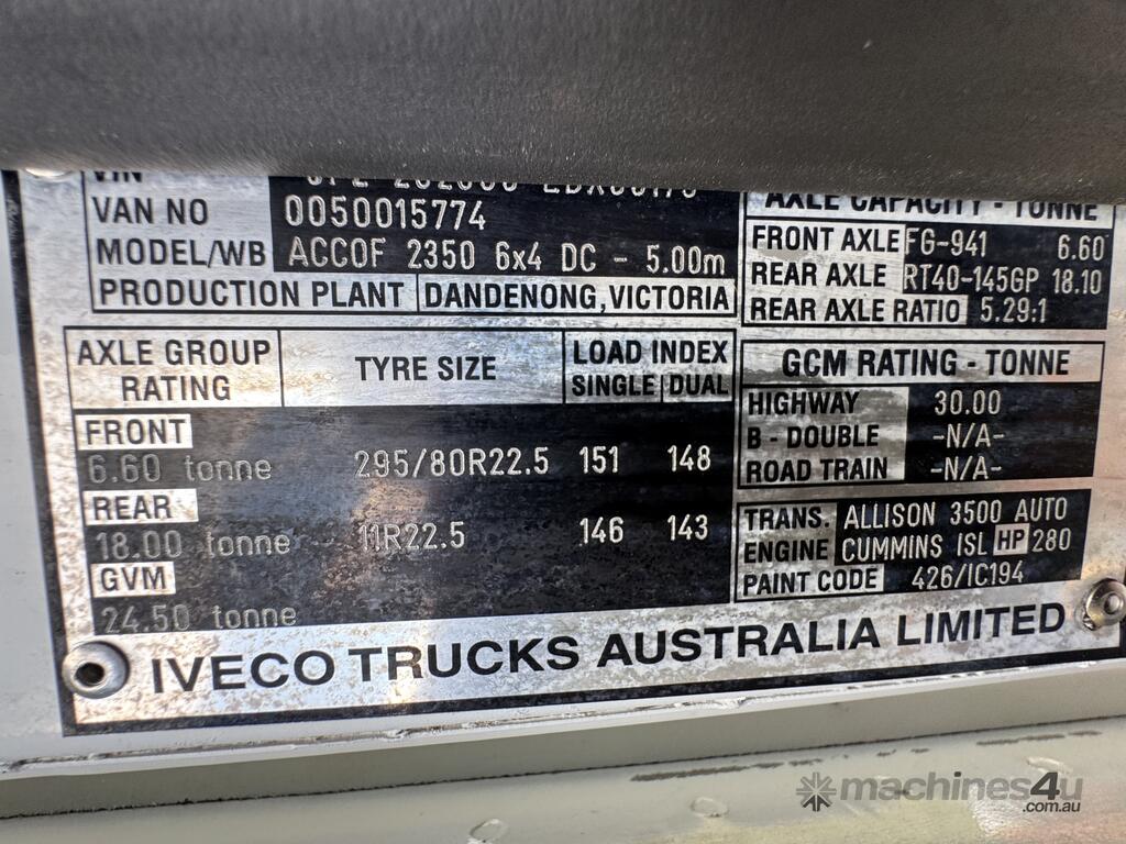 2014 Iveco Acco 2350 6x4 Cab/Chassis. Ex Council with 414,735 kms & 14,453 hours