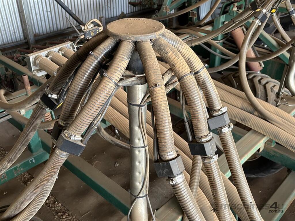 JANKE 14M AIRSEEDER WITH FLEXICOIL 2320, Janke S/N: TUCPSR-1186, 56 tynes on 10" spacings, press wheels, Agtron blockage monitors on all runs, John Deere depth control, paired with Flexicoil 2320 air cart S/N: G2320.AO-S071459, 2 bins, 60/40 split, includes full set of seeding tynes with risers and heads to set up for double shoot, full set of metering rollers, monitor and wiring harness, complete unit presents well, meticulous owner, now surplus to requirements, located Tullamore NSW
