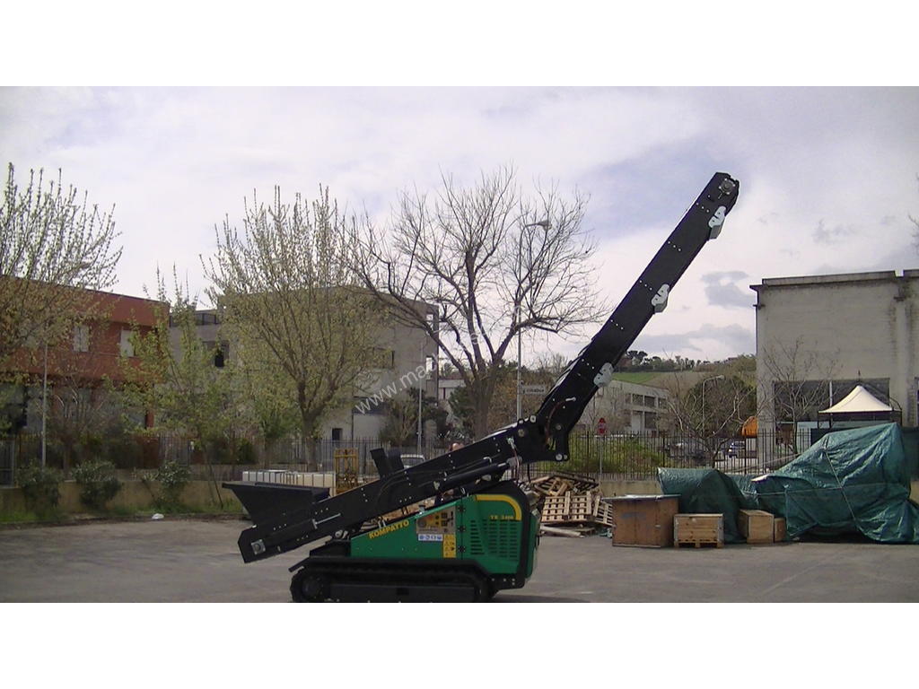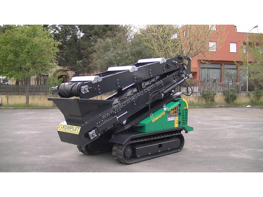 jaws track stacker has a conveyer 6 to 8 meters in length and can stack up to 6meters high ,,it is fully remote control and is powered by isuzu diesel with a weight of 3 ton and width of 1.45 meters is great for tight spots also sand soil yards recycling yards call craig