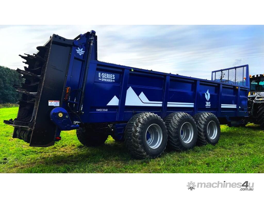 best-selling spreader. Featuring the same innovative technology and quality construction as the JBS commercial models, the JBS E-Series Spreader comes with an upgraded long-link floor chain, quick-attach Vertimax beaters, and steel idler sprockets. A heavy-duty yet affordable machine. The E-Series comes in a variety of sizes and can be loaded with even your smallest equipment.