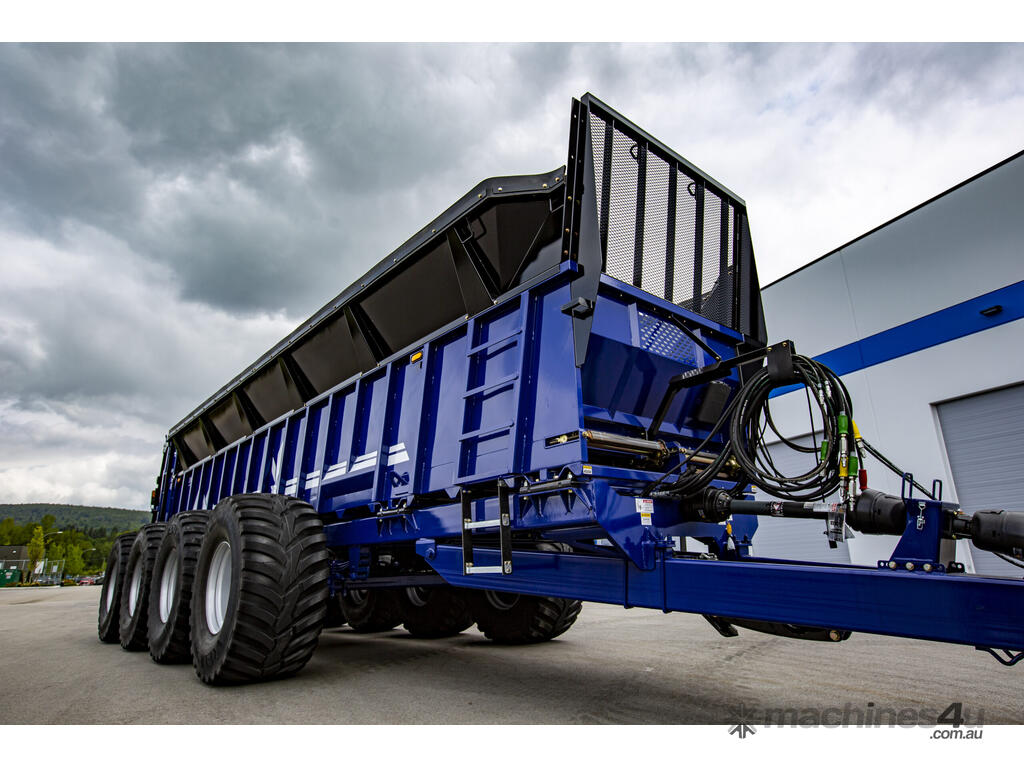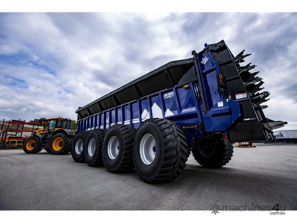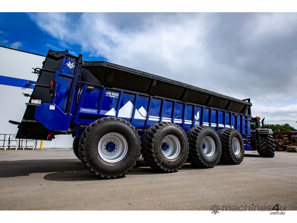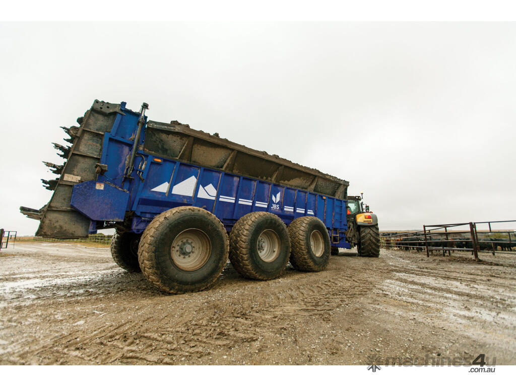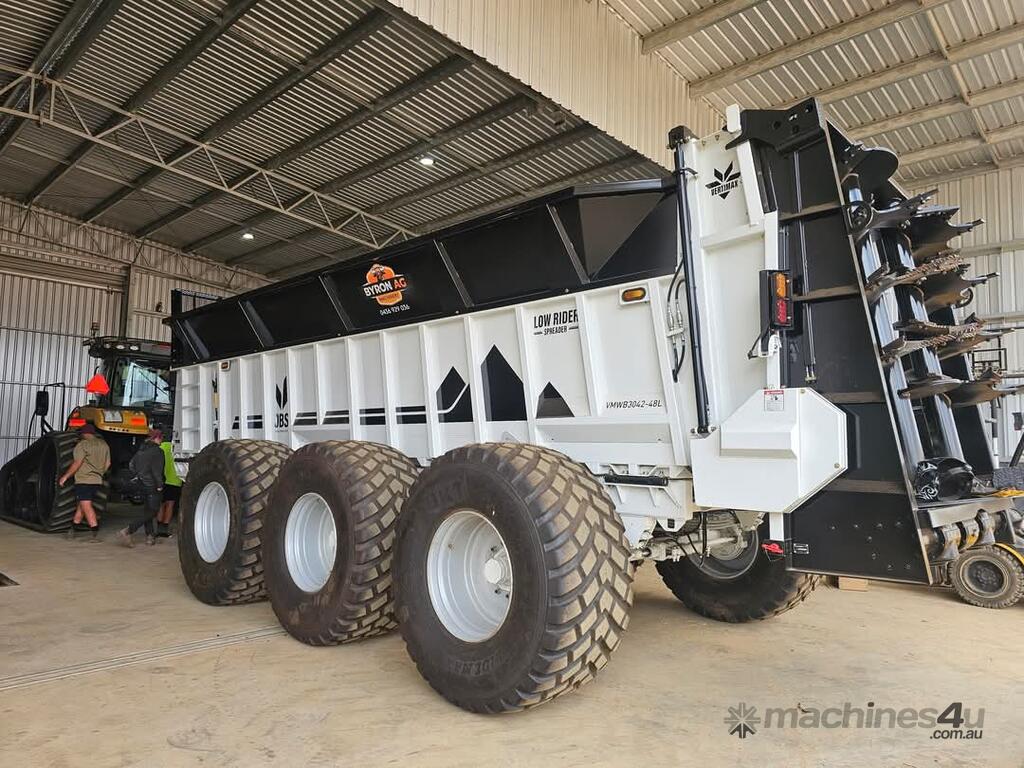 The Tandem, Tridem and Quad Axle Low-Rider Manure Spreaders will deliver a smooth ride on even the toughest terrain. Their low center of gravity and large tires combined with the optional JBS electronic steering system to provide in-field stability that your large-scale or custom farming operation can count on. The JBS Low-Rider Spreaders are the perfect spreader for customers who know exactly what it is they need to get the job done. The newly engineered Quad Axle Low-Rider was created for large commercial farms and custom operators. Its low center gravity and large tires provide you with the stability and versatility you need while boasting a massive Quad Axle 64tonne Spring suspension! At 36’ long the Quad Axle Low-Rider will allow you to spread more acres per load and get the day done faster and more efficiently.