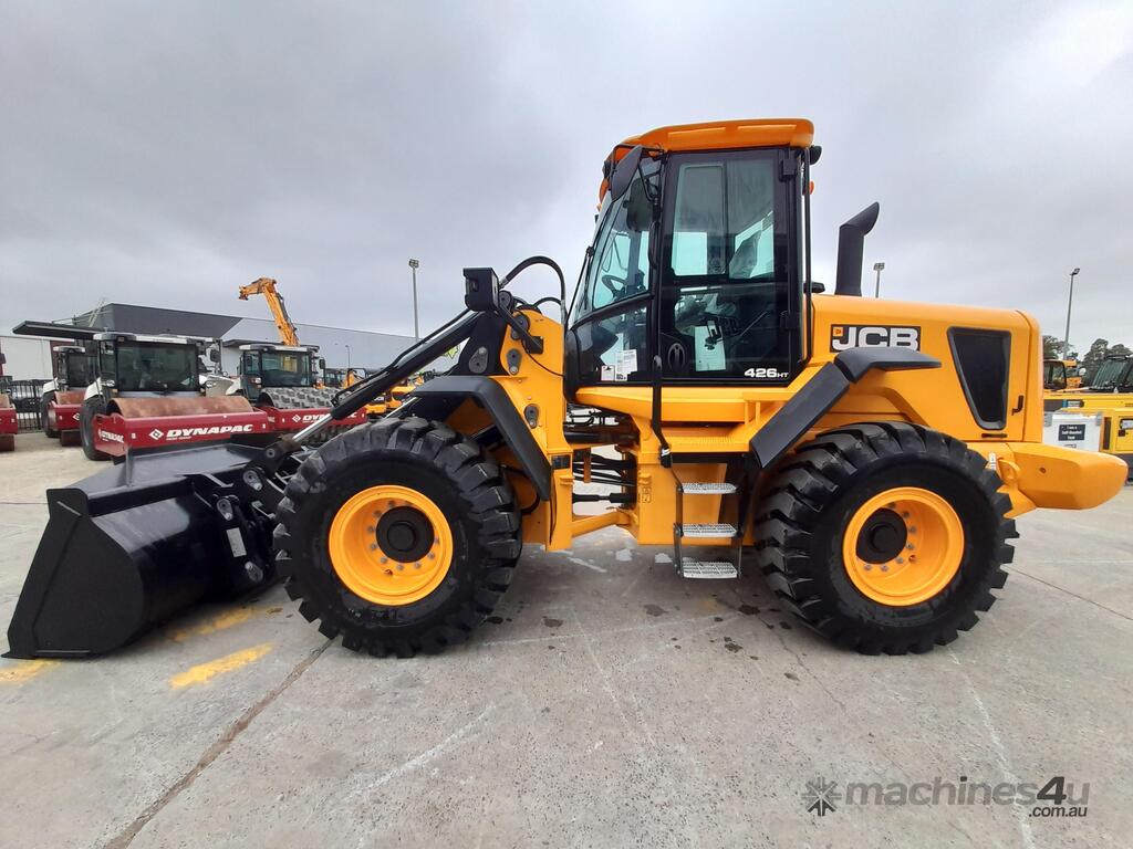 The JCB 426HT Loader is a productive and durable wheel loader known for its fuel efficiency, powerful Cummins engine, and spacious operator cab. The "HT" indicates high torque loader geometry, which is ideal for parallel lifting and multi-attachment use.