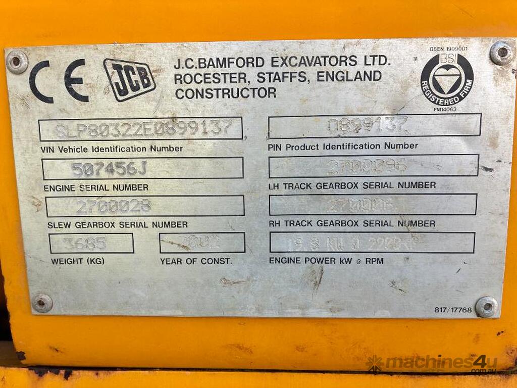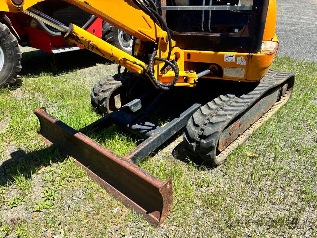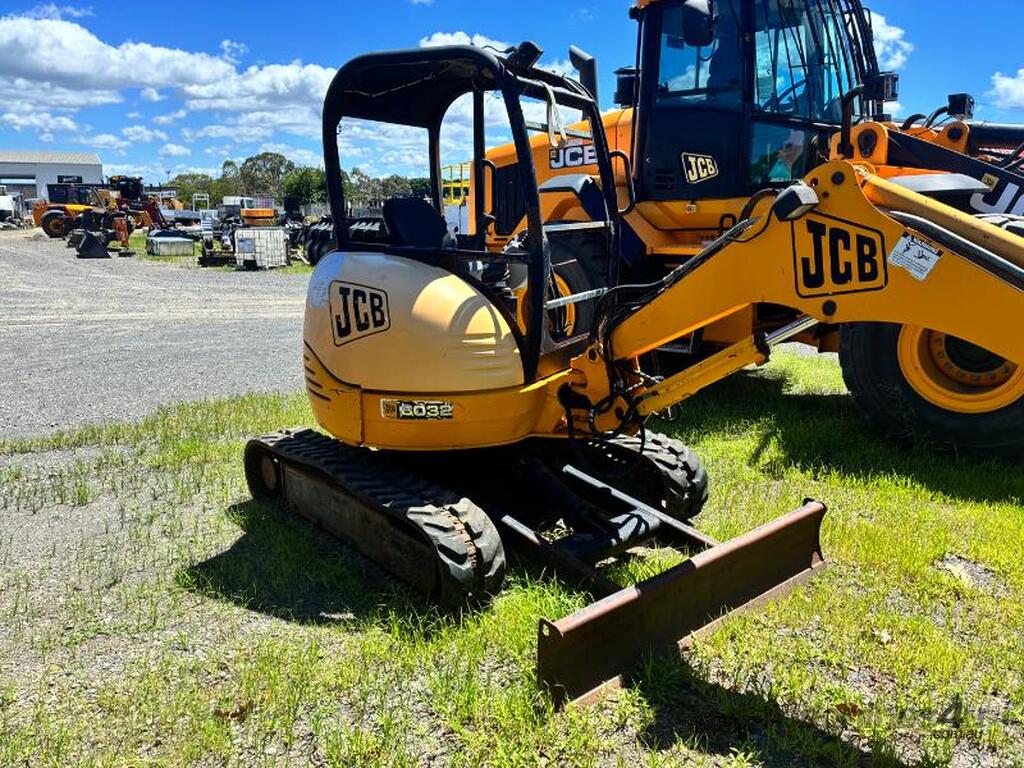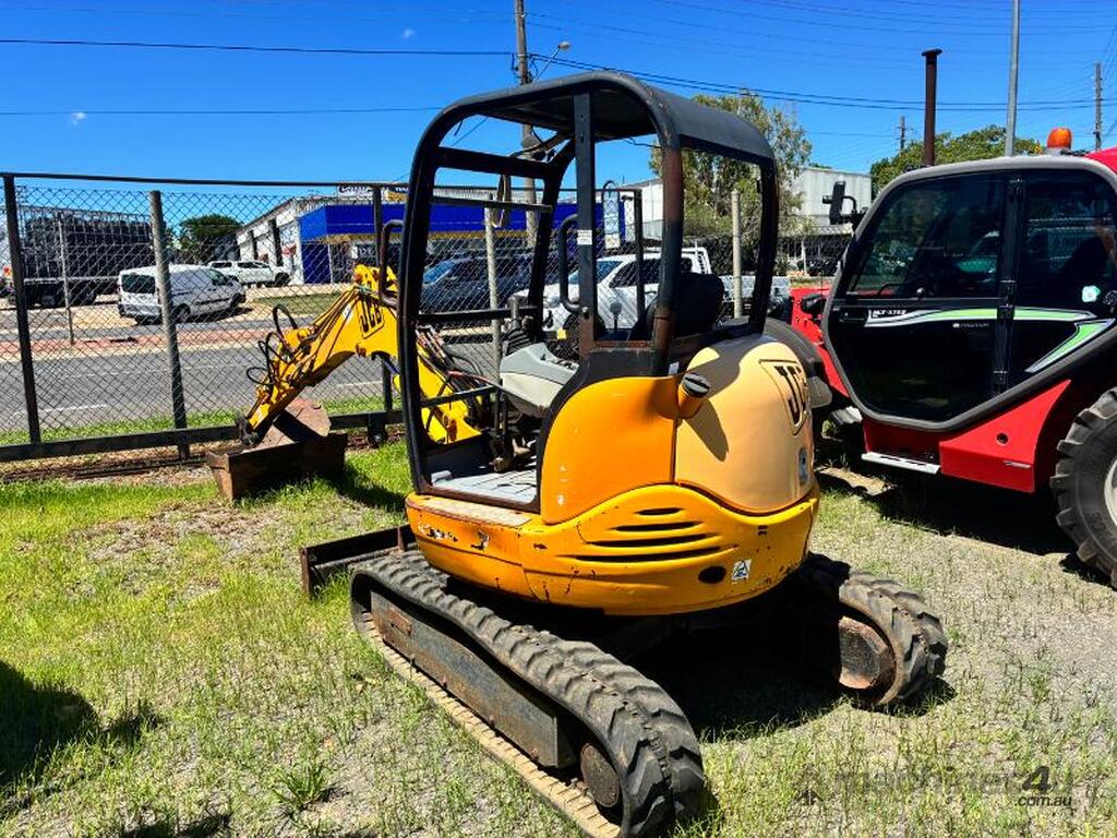 JCB 8032 ZT MINI EXCAVATOR. YOM: 2002. VIN: SLP80322E0899137. SHOWING: HOURS UNKNOWN DUE TO HOUR METER NOT WORKING. ZERO SWING, RUBBER TRACKS, BLADE, TRENCHING BUCKET, GP BUCKET. USED. INSPECTION RECOMMENDED.