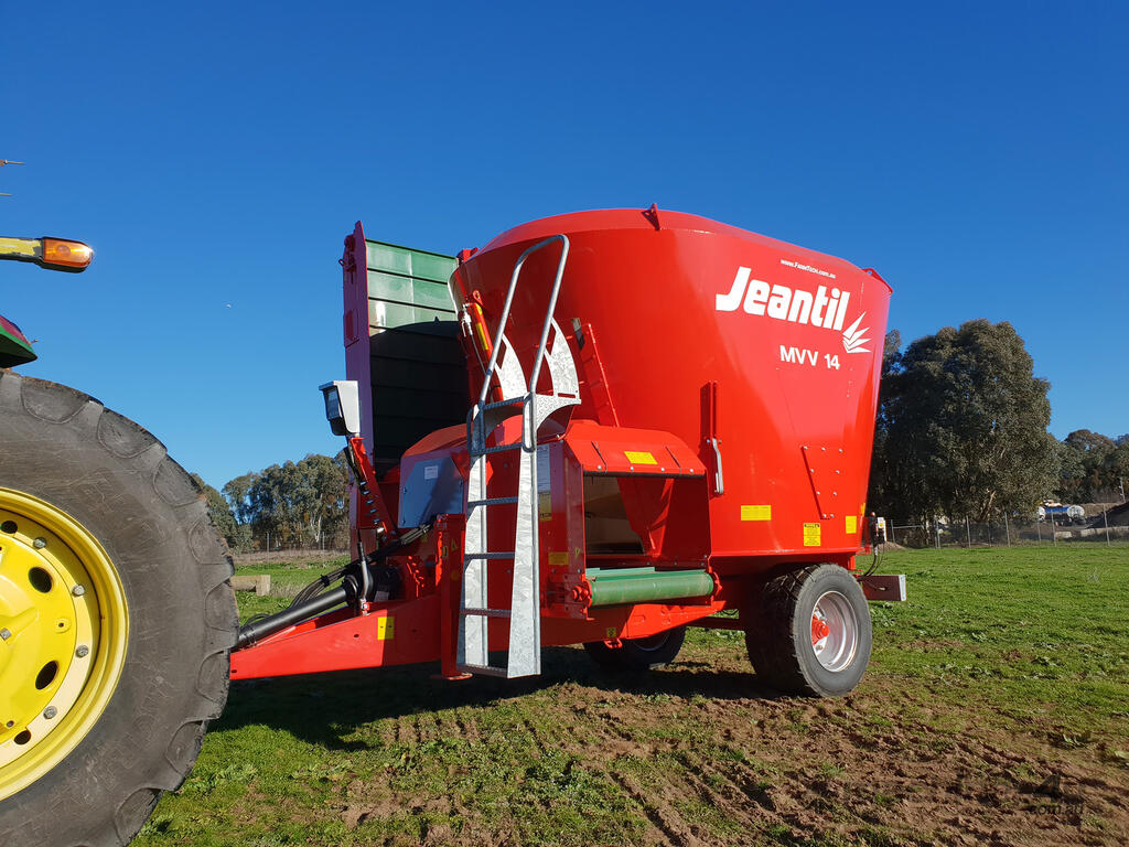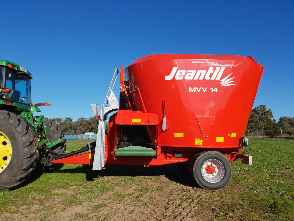 12.0m3 vertical feed mixer with 3.0m discharge elevator. High-Quality French-made feed mixer.