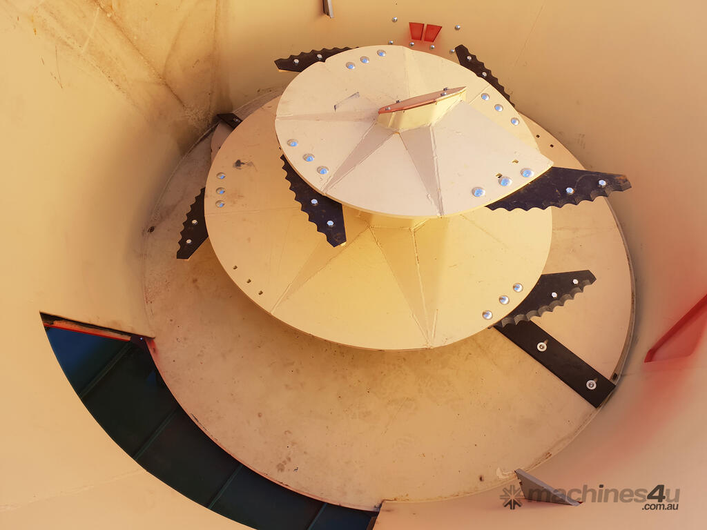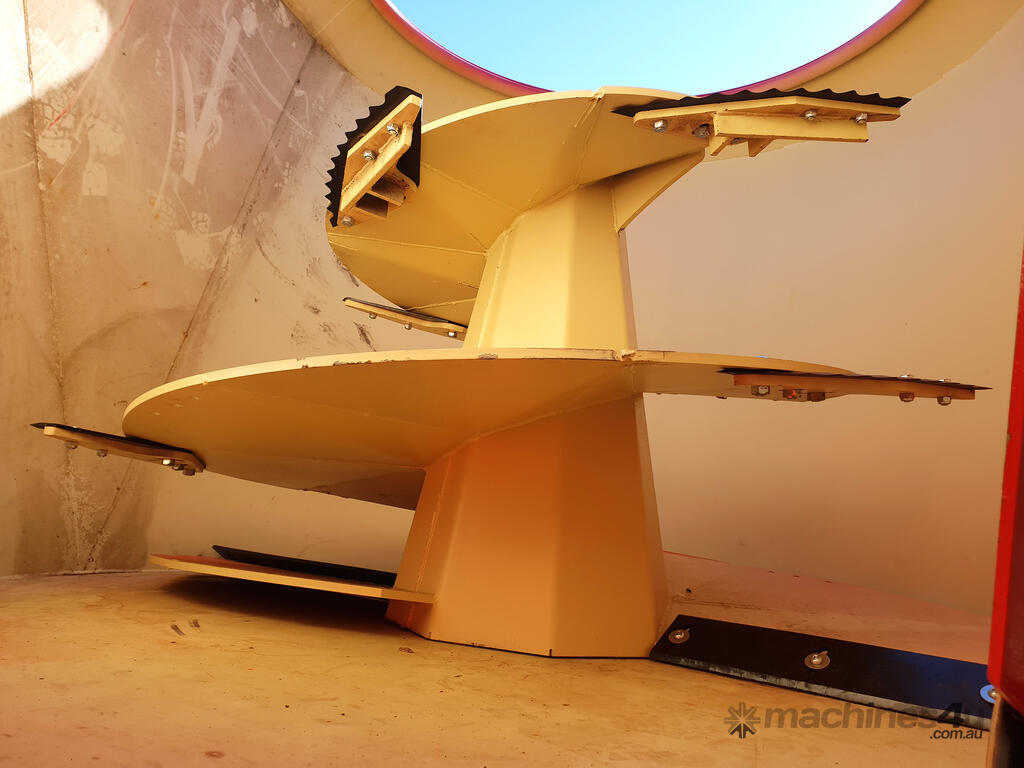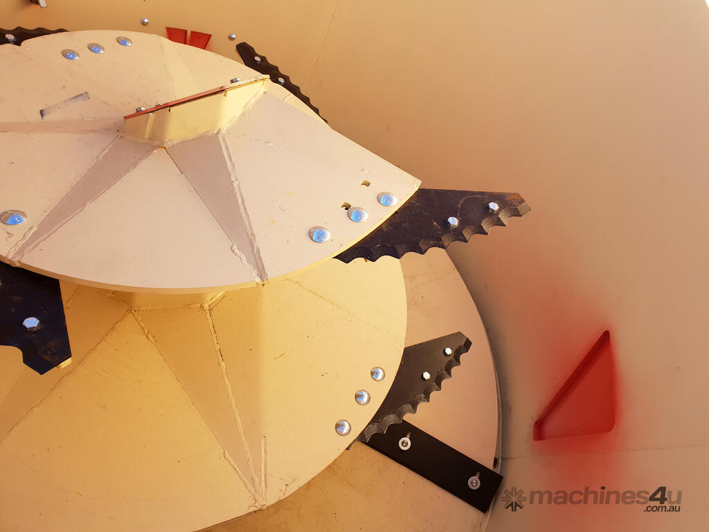 7 knives with variable angle per auger, treated with tungsten carbide.