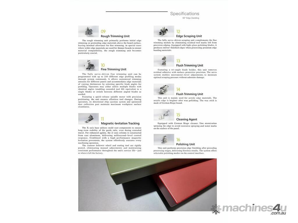 The JEFFIA SK81-K2 is a high-performance edge banding machine specifically engineered for modern, high-end furniture manufacturing . It excels in processing handle-free (J-shape/K-shape) drawers, door panels, and premium office tabletops . This machine provides a seamless transition between 45° full bevels and beveled edges with a reserved straight top, ensuring a superior aesthetic and functional finish