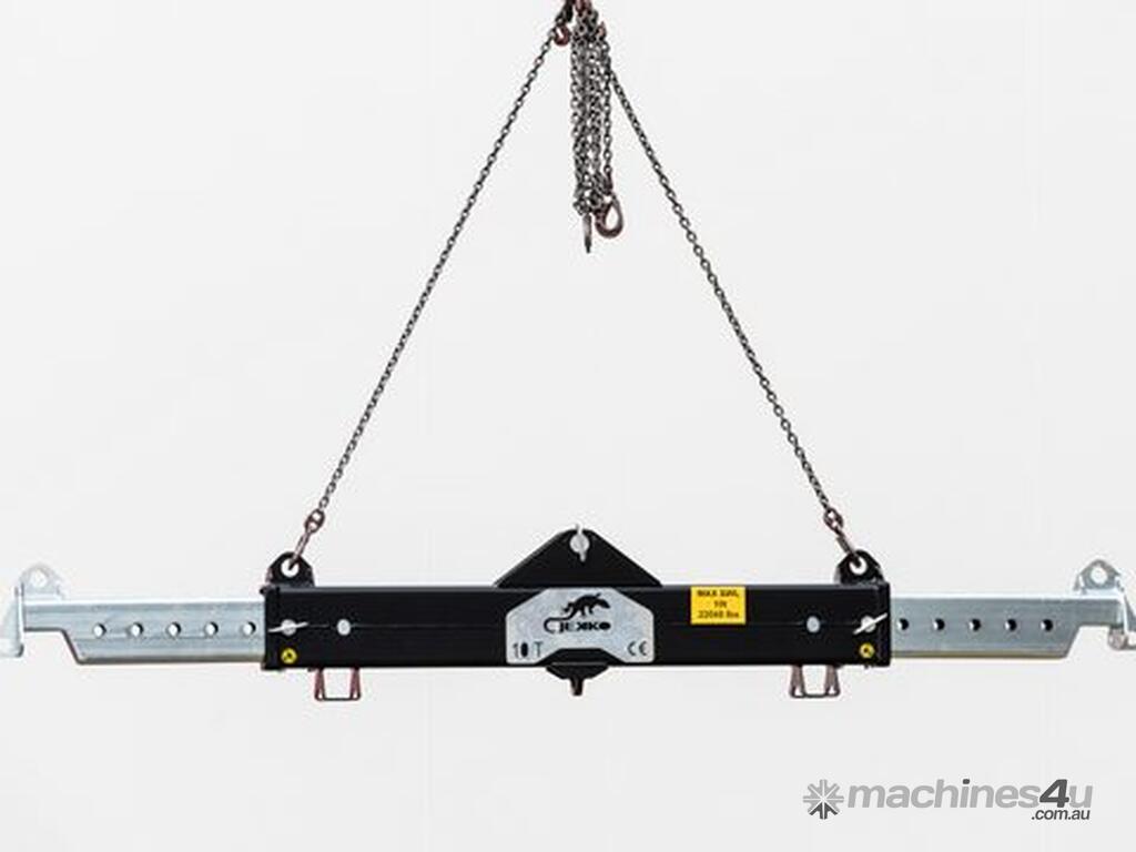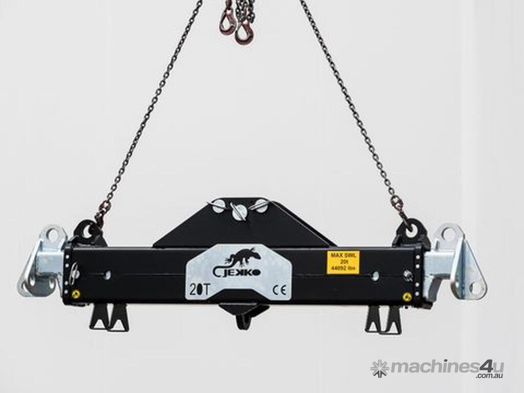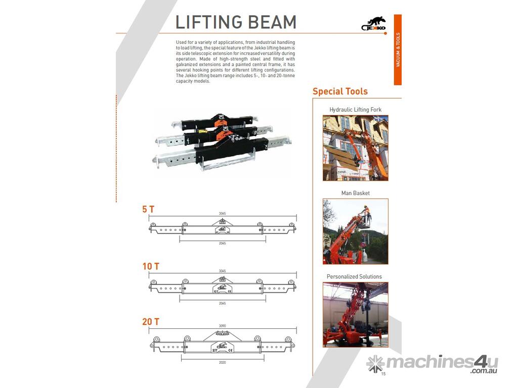 Used for various purposes, from industrial handling to load lifting, the special feature of the Jekko lifting beam is its side telescopic extension for increased versatility of operation. Made of high-strength steel and fitted with galvanized extensions and a painted central frame, it has several hooking points for different lifting configurations. The Jekko lifting beam range includes 5-, 10- and 20-ton capacity models.