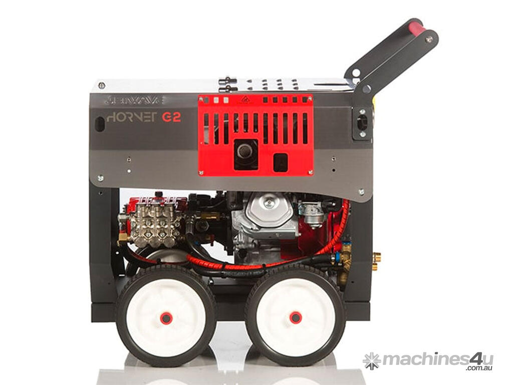 The Jetwave® Hornet G2™ revolutionizes the single-cylinder gearbox petrol-driven cold water high-pressure cleaner powered by HONDA™ Australian engineered and assembled; its innovation provides heavy-duty users with a compact powerful, safe, and easy to use unit that encompasses stainless steel exoskeleton (PEXO™) cover protection, centralized control & multi-configurable design.