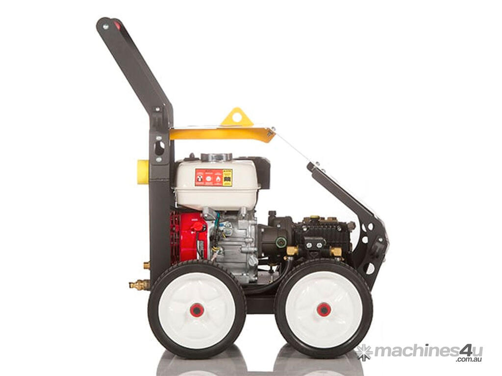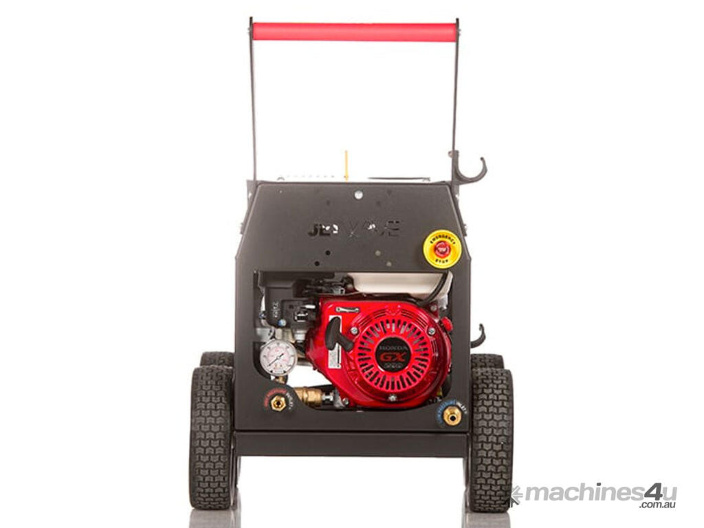 The Jetwave® Hornet G2™ Jnr revolutionizes the single-cylinder gearbox petrol-driven cold water high-pressure cleaner powered by HONDA™ Australian engineered and assembled; its innovation provides heavy-duty users with a compact powerful, safe, and easy to use unit that encompasses stainless steel exoskeleton (PEXO™) cover protection, centralized control & multi-configurable design.