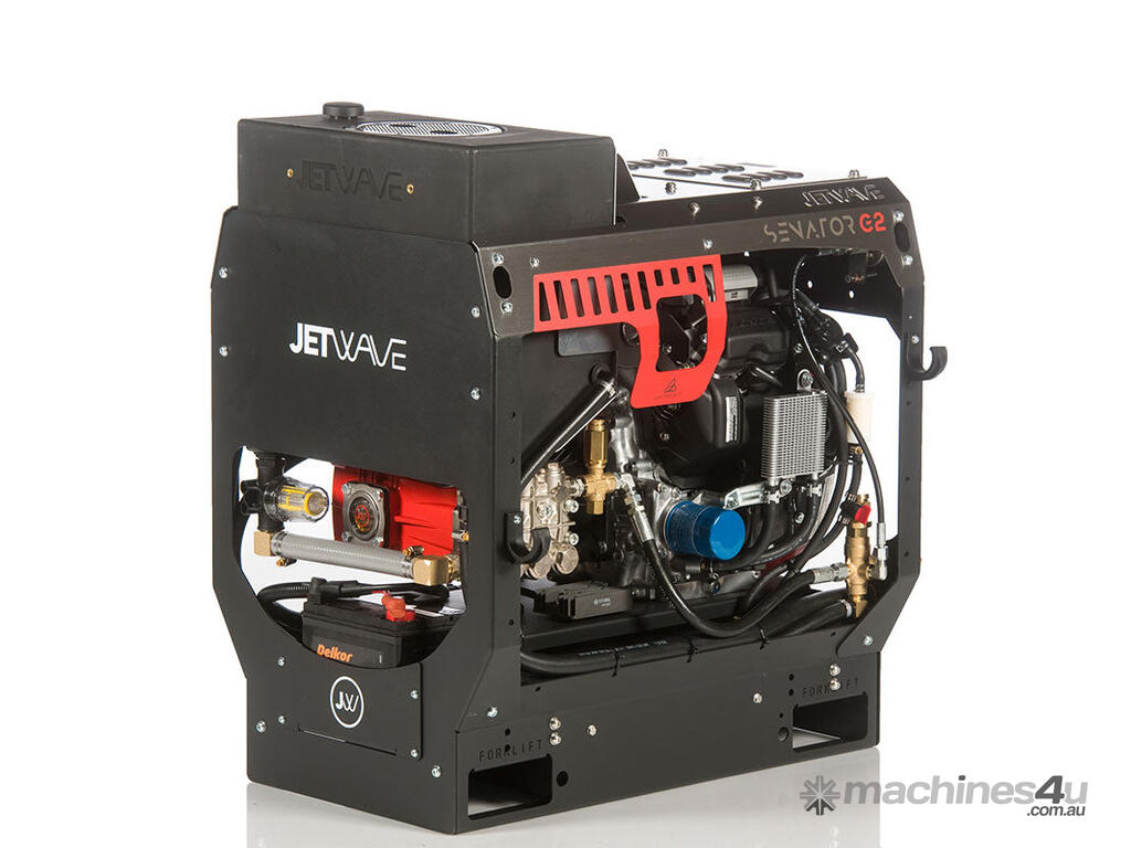 The Jetwave Senator G2 revolutionises the twin-cylinder gearbox petrol-driven high-pressure cold water pressure cleaner powered by HONDA™. Australian engineered and assembled; its innovation provides heavy-duty users with a compact powerful, safe and easy to use unit that encompasses stainless steel exoskeleton (PEXO™) cover protection, centralised control & multi-configurable design.