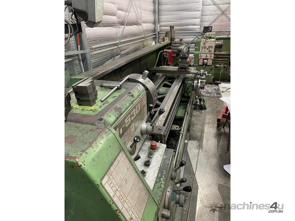 JFMT N530 Big bore lathe 80mm bore 2200 between centers. 340 over cross slide, 530 over the bed, 800 with gap out. Powerful and versatile lathe with 2 speed tailstock, perfect for the large drills. Easson digital readouts with new cross slide scale. Still in use. Large capacity coolant pump especially good for deep hole drilling. 3 jaw chuck with reverse jaws and soft jaws, 4 jaw chuck, fixed steadies (one large one small) travelling steady. This machine has made me a lot of money in the time I have had it. 4 way feed lever without stopping (in out back forward feeds) Really good screw cutting capabilities, I have done a few multistarts on it with ease. Great size tool holder rigid and easy to index. The price represents value for money as capacity this big with some of the newer imports are well over the 20-30k mark.