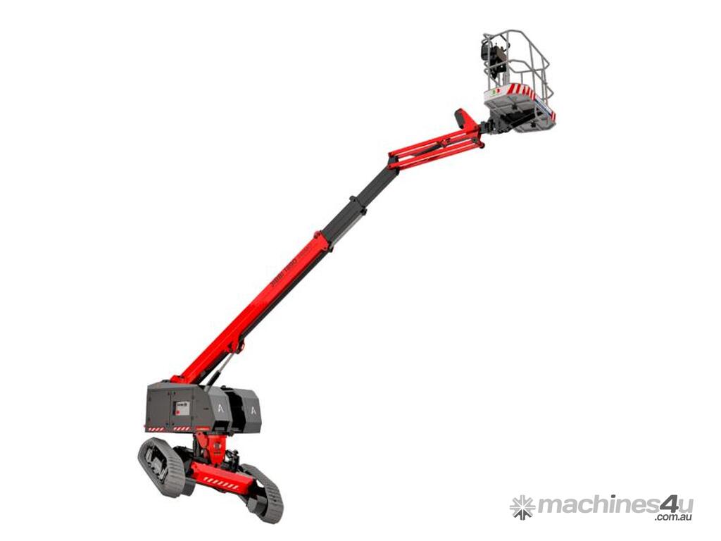The first full electric, self-levelling, tracked telescopic boom with electric drive, powered by fully removable battery power packs.