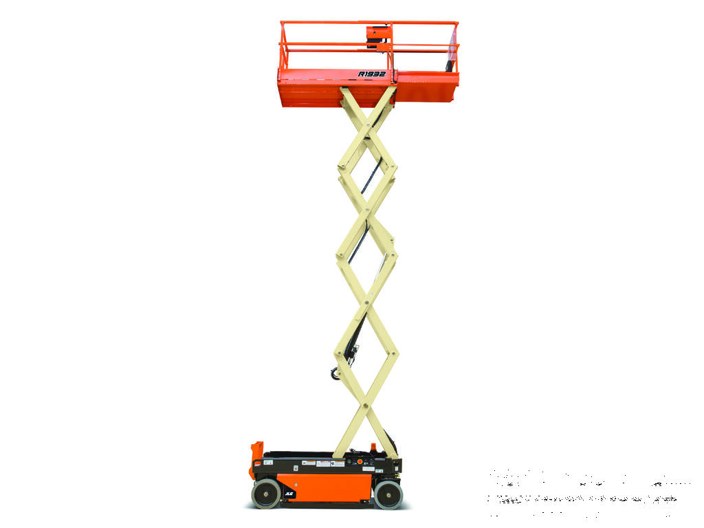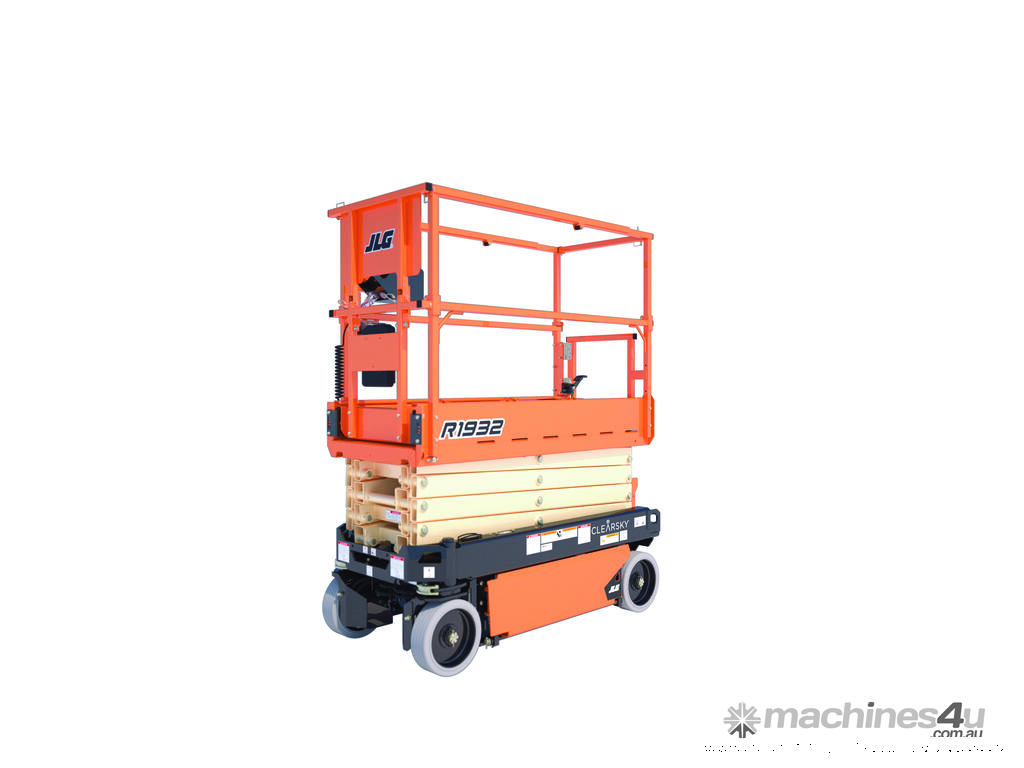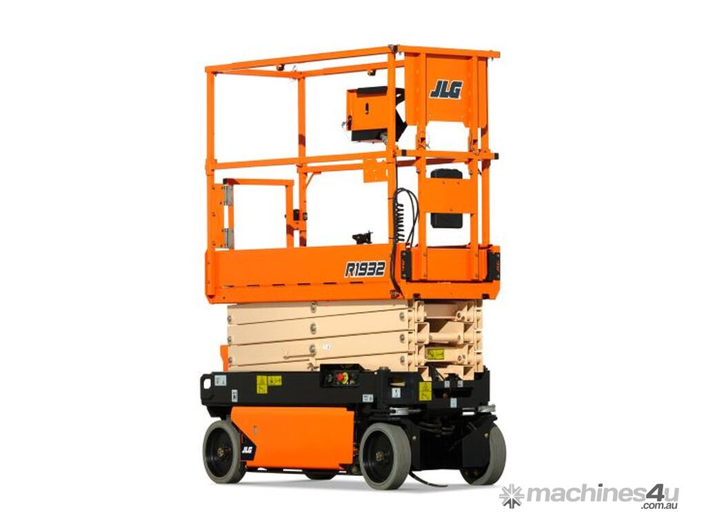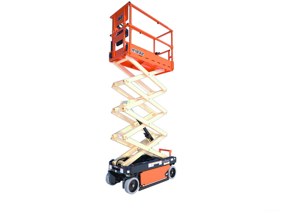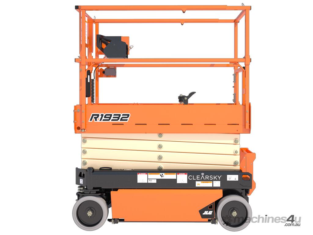 The JLG 1932R is a 2021 electric scissor lift with a platform height of 5.8 m (19 ft), ideal for indoor access in tight and low-clearance spaces.