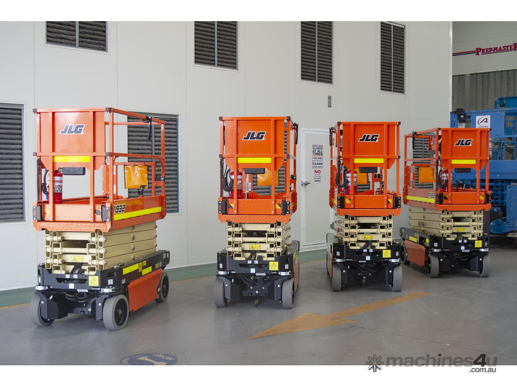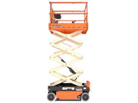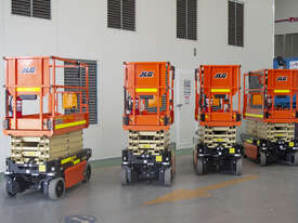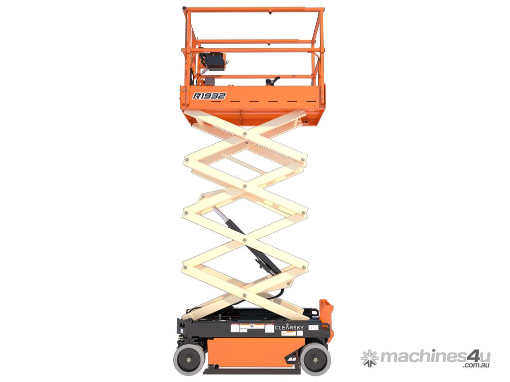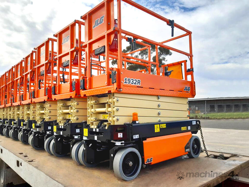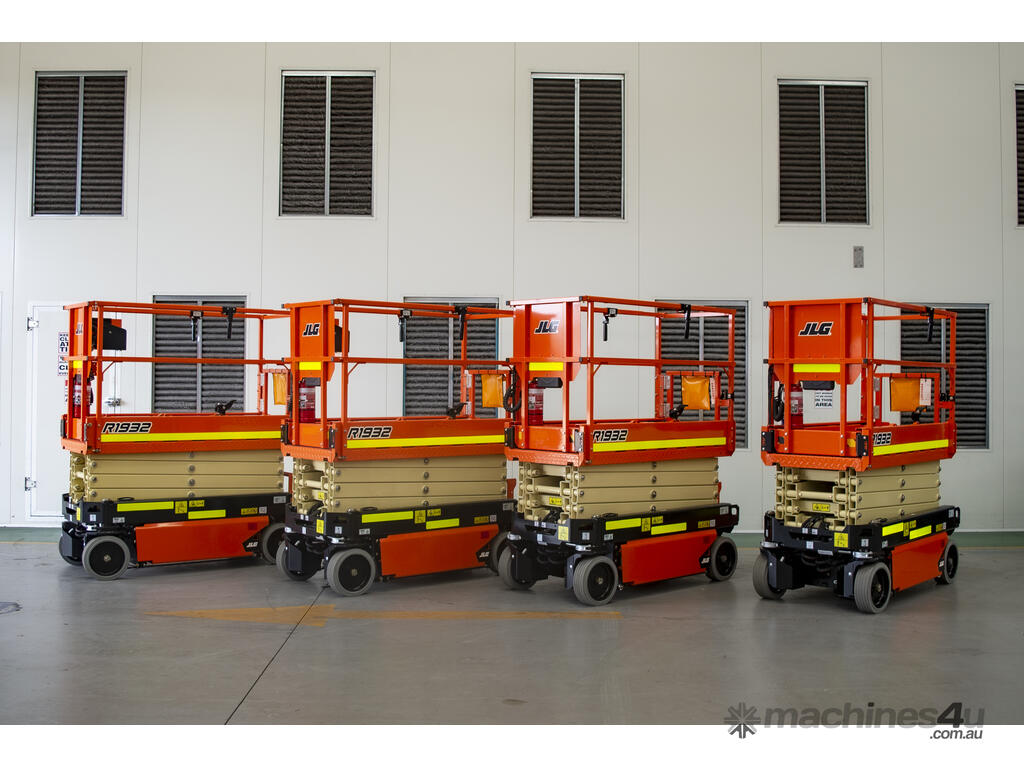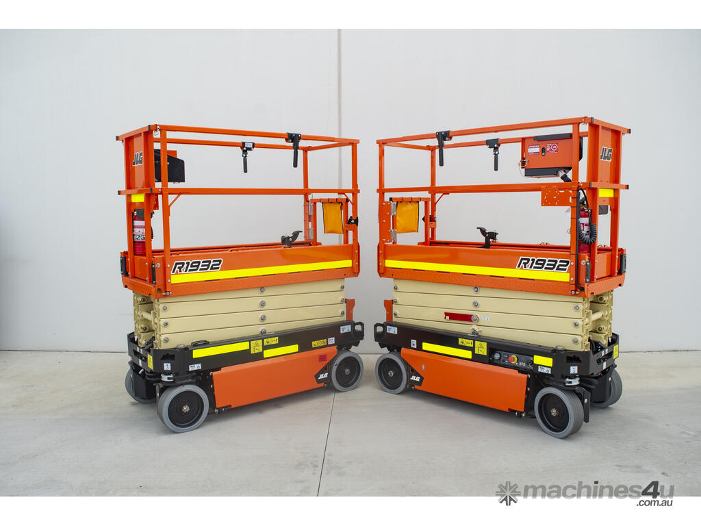 The JLG 1932R is a 2021 electric scissor lift with a platform height of 5.8 m (19 ft), ideal for indoor access in tight and low-clearance spaces.