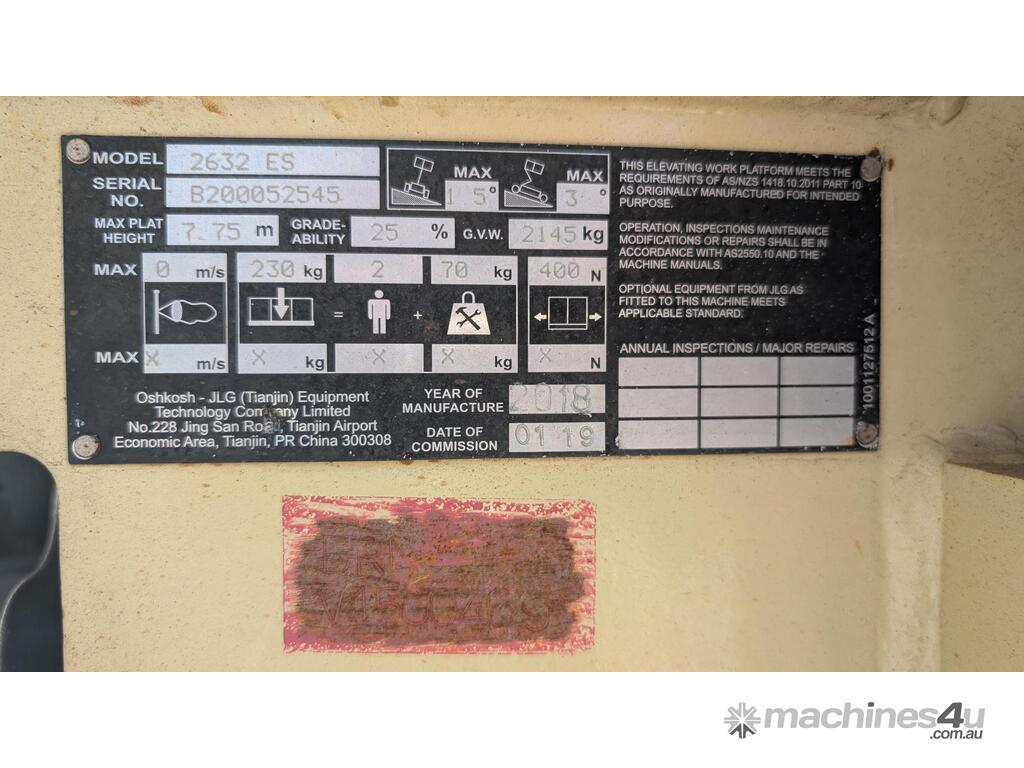 8m JLG narrow electric scissor lift, manufactured in 2018.