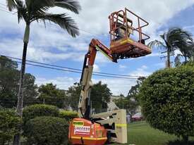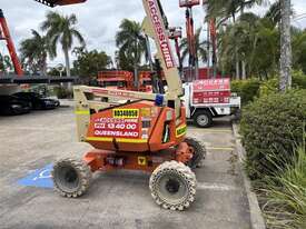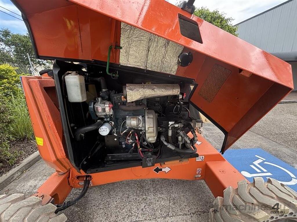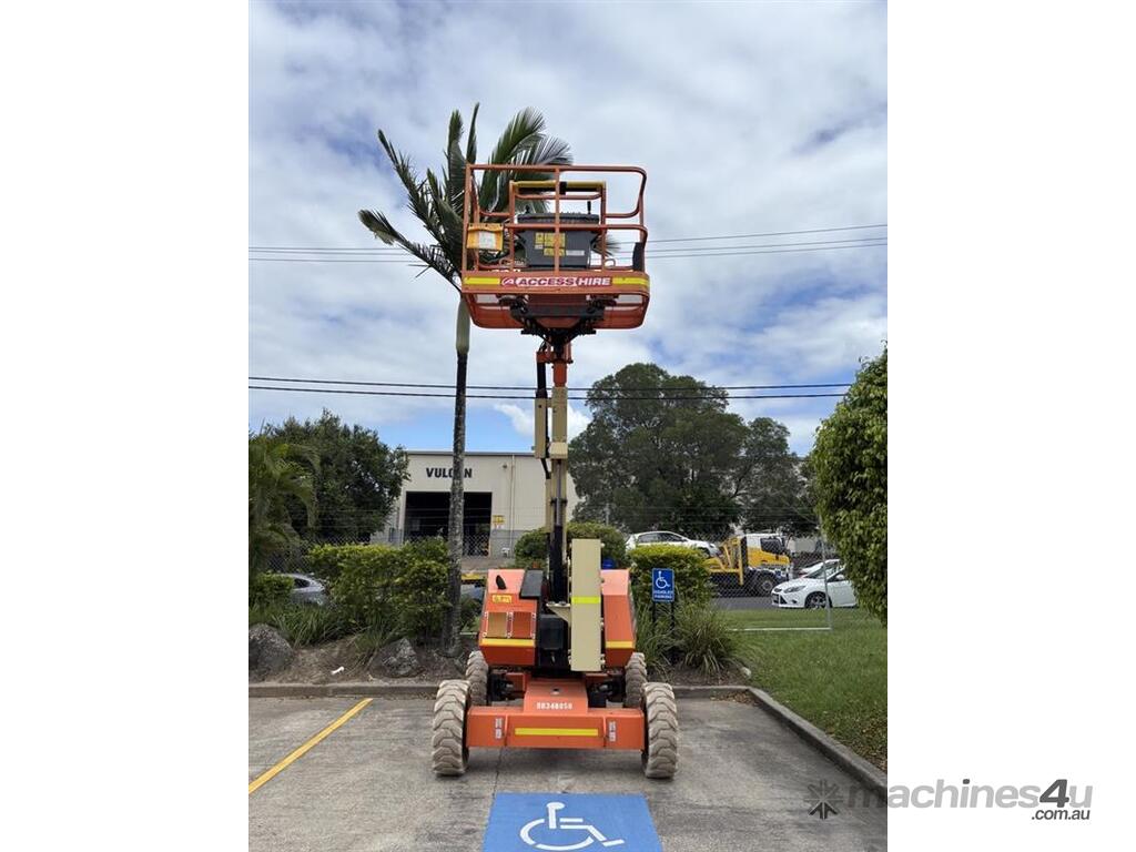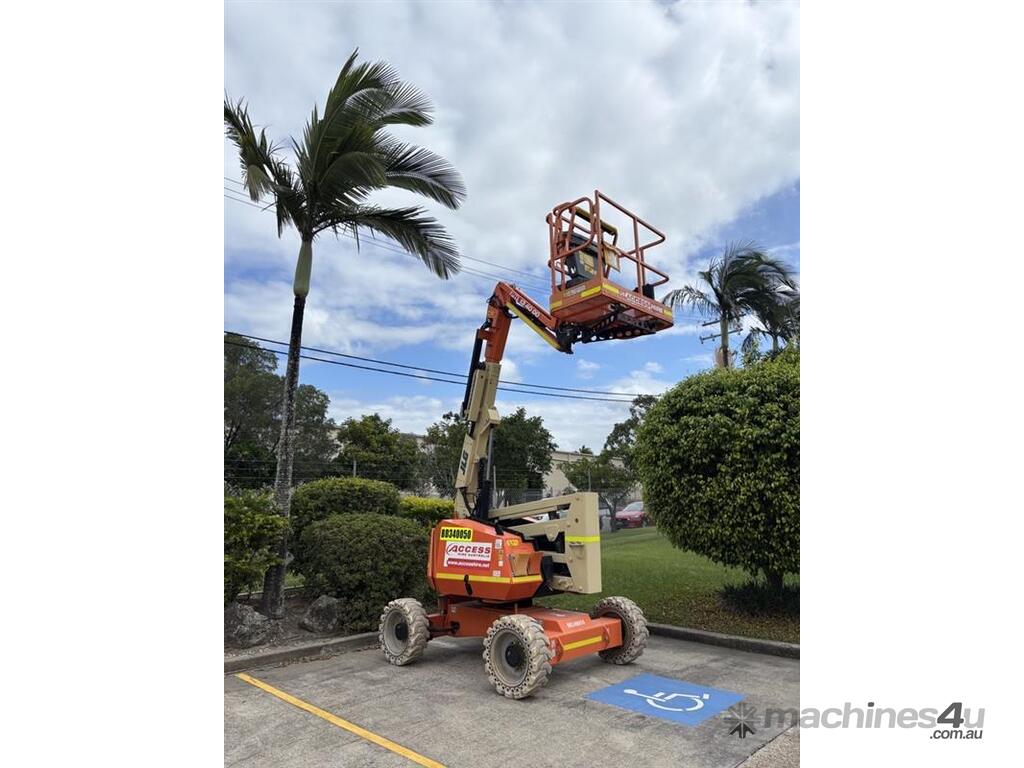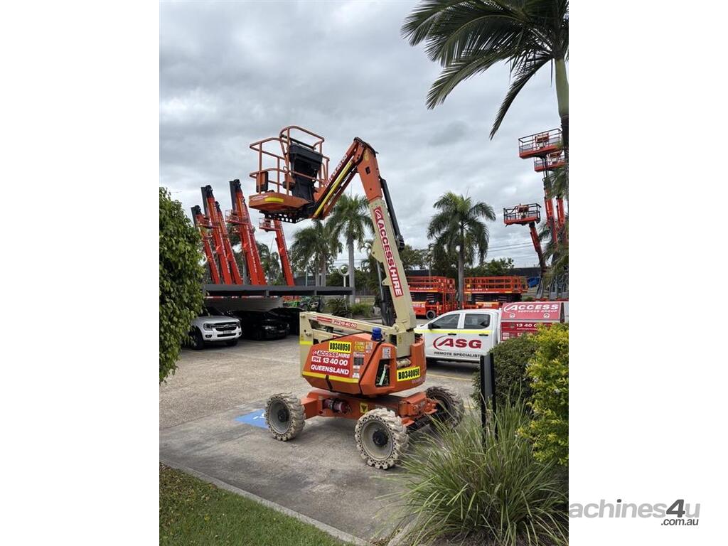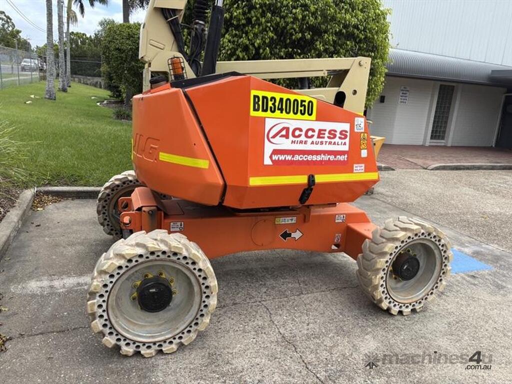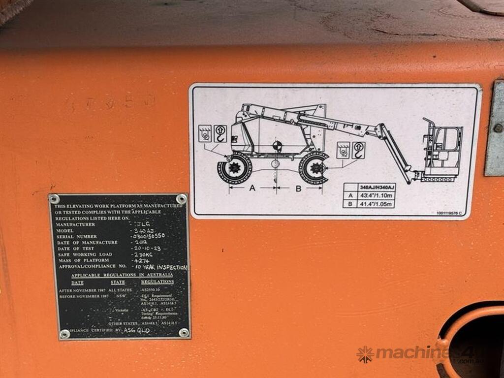 The JLG 340AJ is a compact rough-terrain articulating boom lift built for reliable access on outdoor job sites. It offers a 10.33 m platform height and 6.06 m horizontal outreach, letting operators reach up and over obstacles with ease. The 1.22 m jib and 180° platform rotator support precise positioning while the oscillating axle and 4WD deliver traction on uneven ground. With a 227 kg platform capacity and smooth proportional controls, the 340AJ provides steady performance for maintenance and construction tasks. Its dual-fuel or diesel engine options keep operation simple and suited for a wide range of environments.