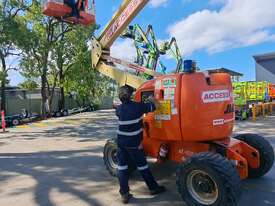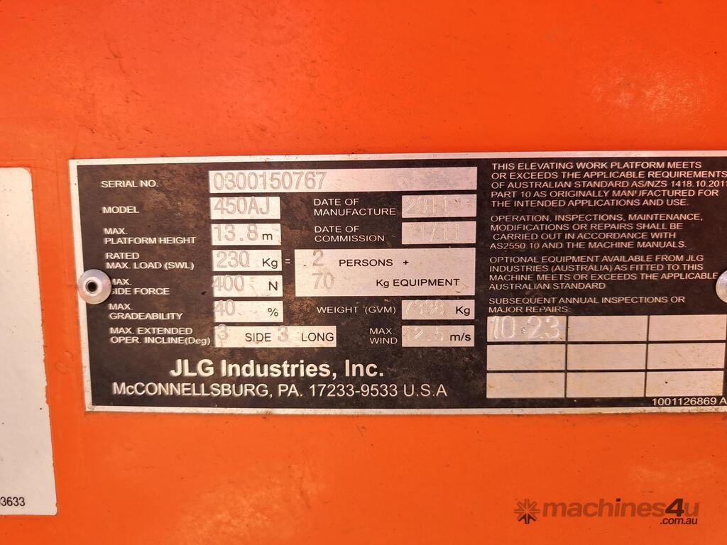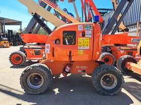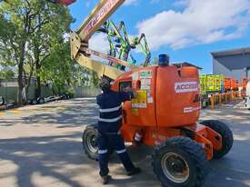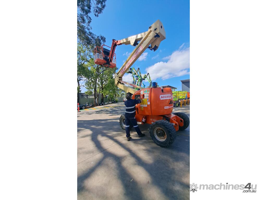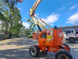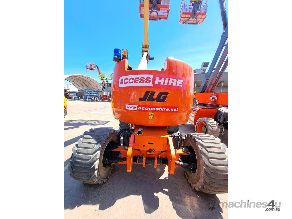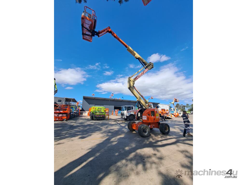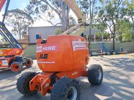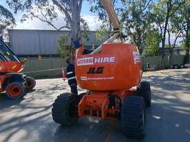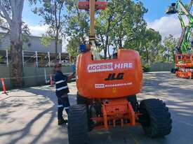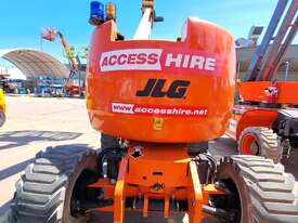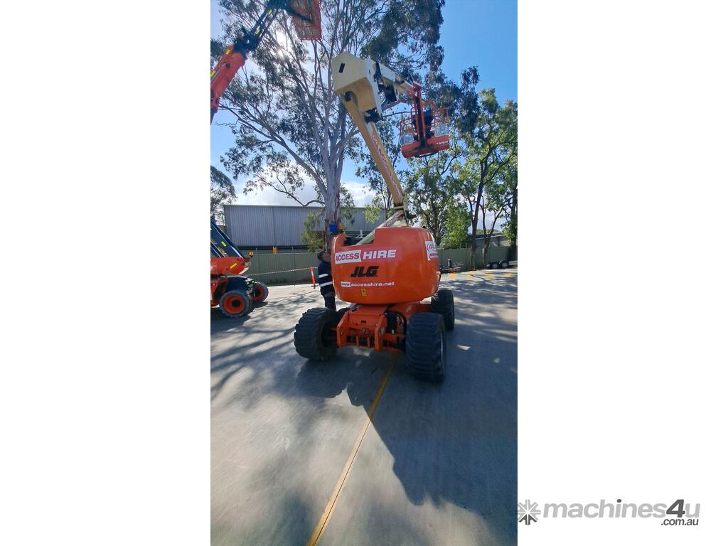 The JLG 450AJ is a 45ft diesel articulating boom lift built for construction, maintenance, and industrial access work. It offers a working height of 45ft (13.72m), horizontal outreach of 25ft (7.62m), and a 250kg platform capacity. Its articulating jib provides flexible positioning for overhead and hard-to-reach areas. The 450AJ delivers strong performance with a Deutz diesel engine, 4WD traction, and 45 percent gradeability for rough terrain.