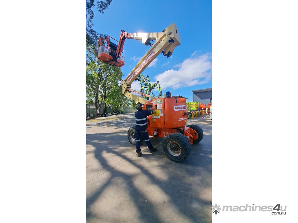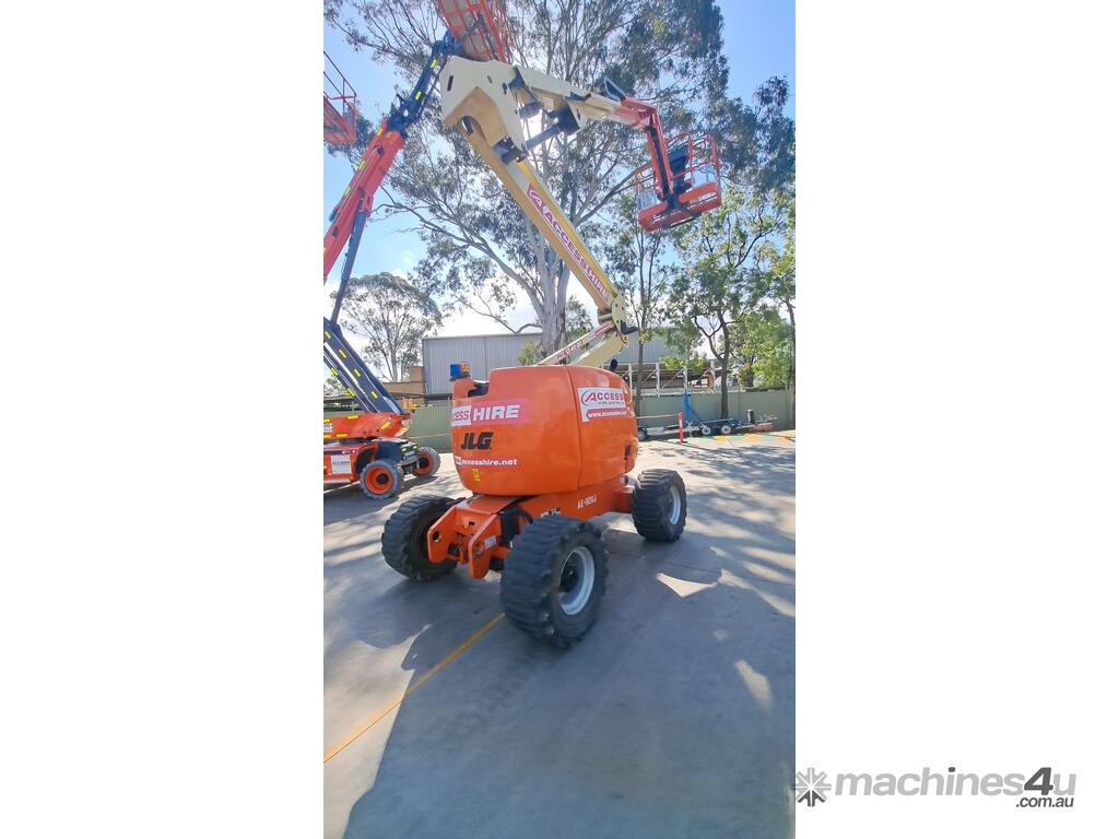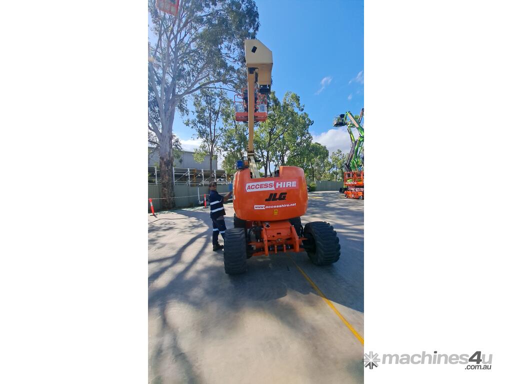 The JLG 450AJ is a 45ft diesel articulating boom lift built for construction, maintenance, and industrial access work. It offers a working height of 45ft (13.72m), horizontal outreach of 25ft (7.62m), and a 250kg platform capacity. Its articulating jib provides flexible positioning for overhead and hard-to-reach areas. The 450AJ delivers strong performance with a Deutz diesel engine, 4WD traction, and 45 percent gradeability for rough terrain.