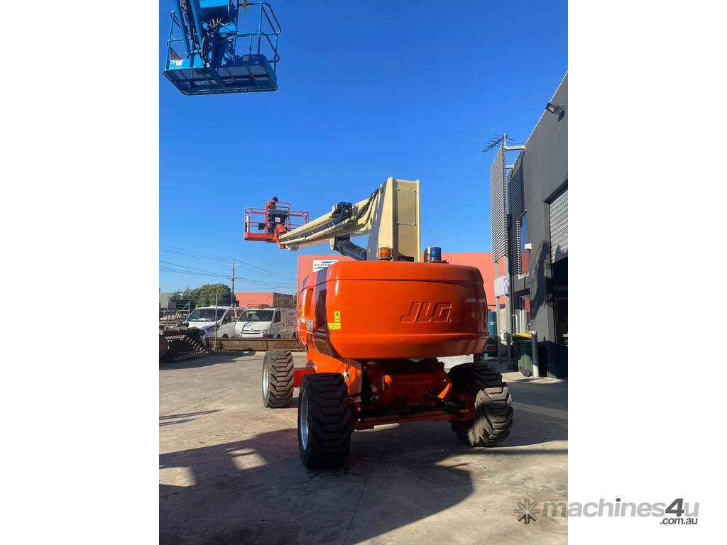 If you are looking for a high speed with good traction and a powerful engine, the 860SJ boom lift is your answer. This JLG Diesel Boom has a straight boom that provides increased outreach and allows fast operation from ground to full height using boom lift and telescope and jib. It offers 180 degree hydraulic platform rotator and multiple speed controls to adapt to every type of job.