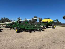 JOHN DEERE 1910 340 BUSHEL AIRCART with tow behind 3 tank. 4 run stationary double shoots, 12" conveyor auger. Regular, high, very high & low rate meter rollers. 21.5LX16.1 front & 28L X26 rear all weather tyres.