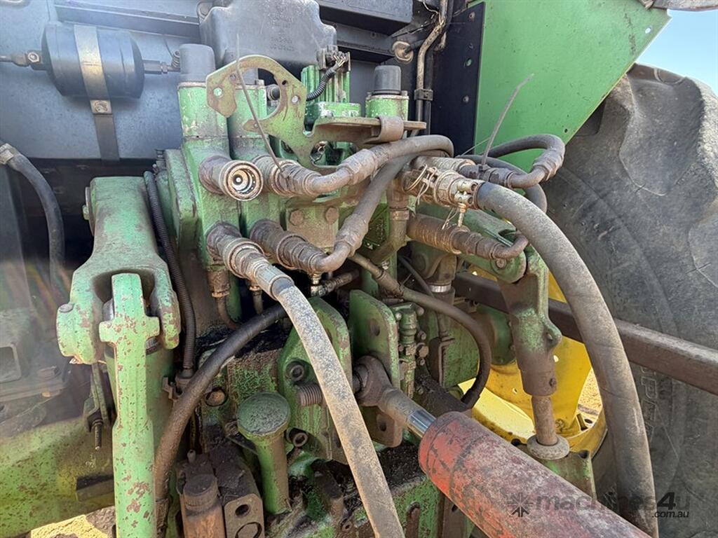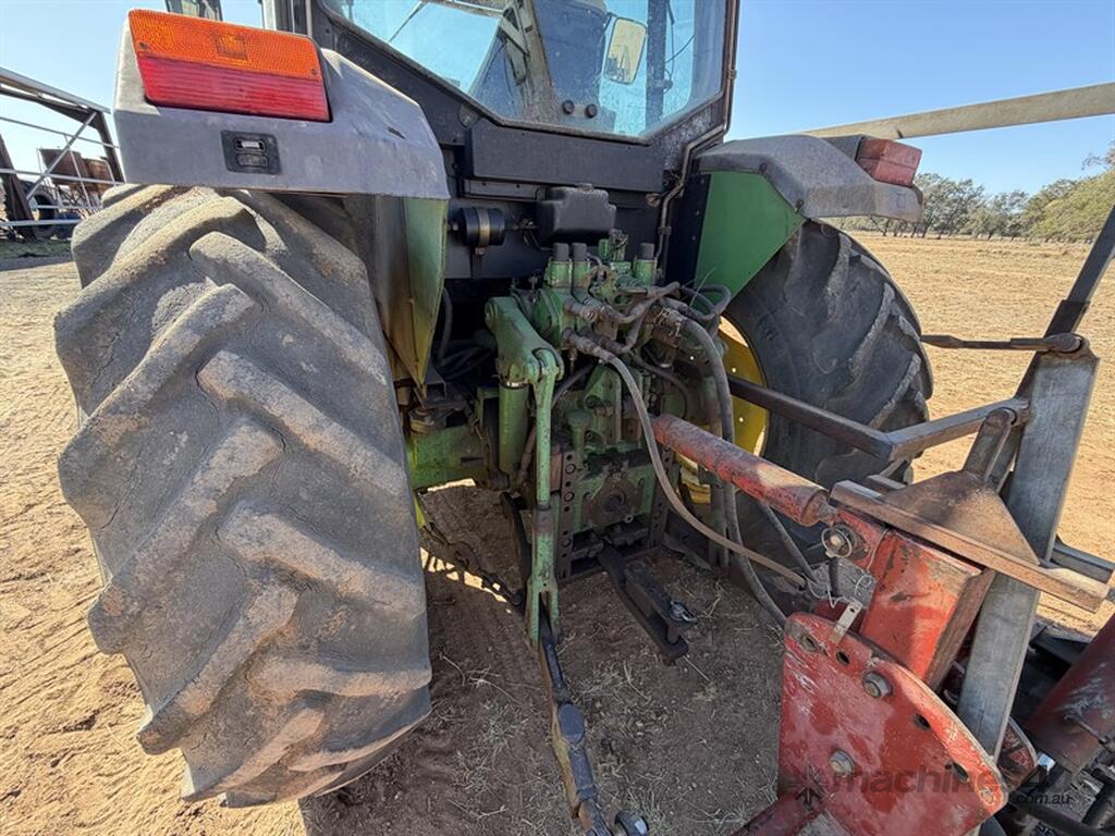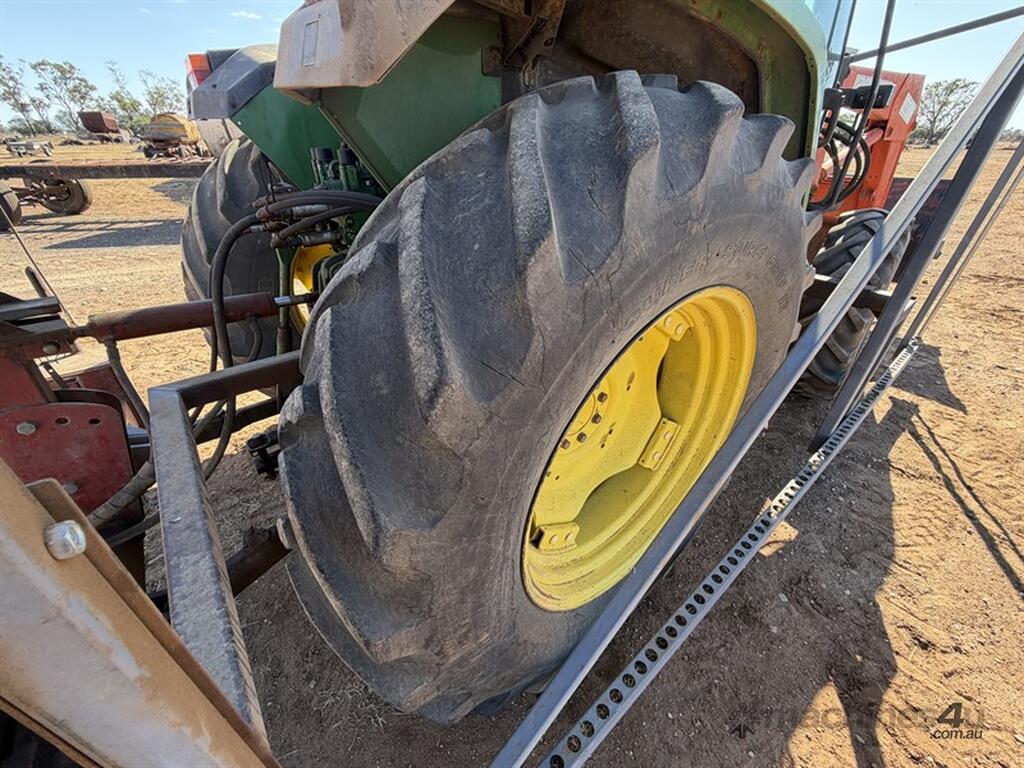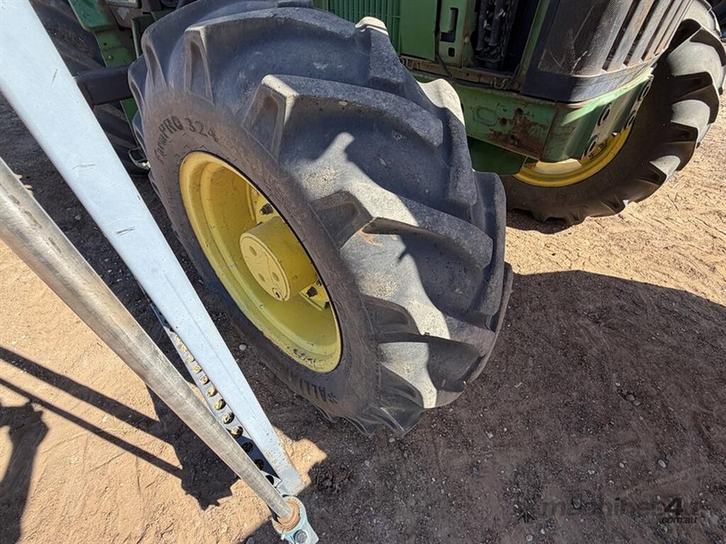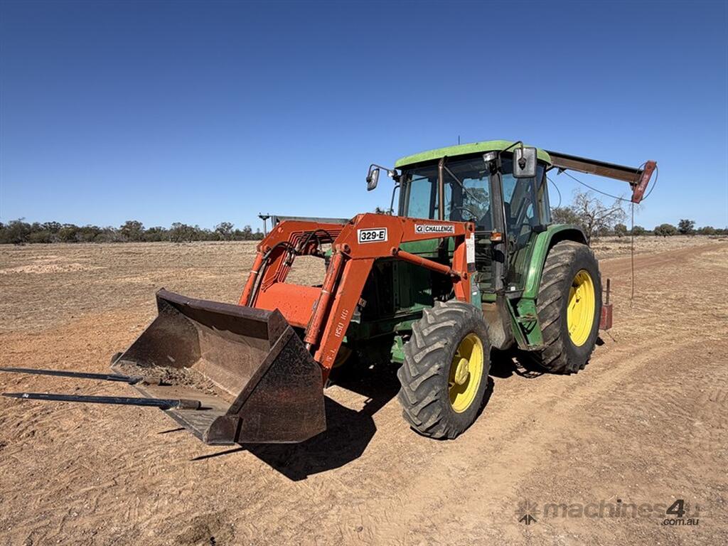JOHN DEERE 6210 TRACTOR,S/N: L062210Y255203, circa 2000, recently had new hydraulic pump, steering valve, water pump, alternator, fuel lift pump, fitted with Challenge front end loader with bucket, FWA, 3PL, 3 remotes, 12 speed transmission, 9863hrs, NOTE: post driver and fencing frame not included, located Come-by-Chance