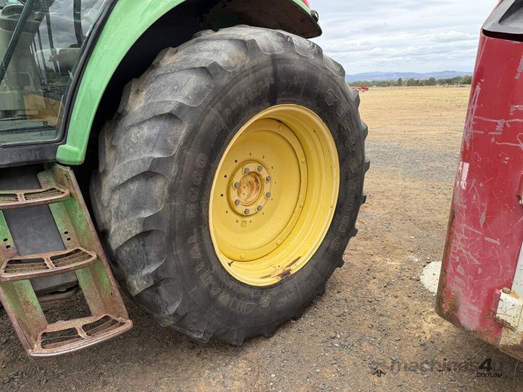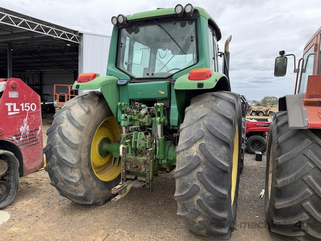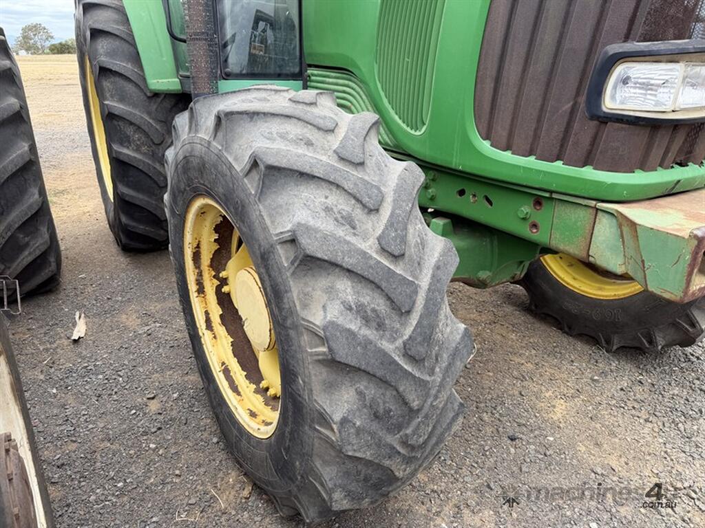 JOHN DEERE 6620 FWA TRACTOR TRACTORS - John Deere 6620 FWA Tractor, 150HP with IVT transmission. Runs and drives but has issue with high speed and stalling, diagnosed but not repaired. Cabin in fair condition with UHF radio. Fitted with 520/85R38 rear tyres approx. 20% and 16.9-28 front tyres approx. 50%. Equipped with PTO, 3PL with arms included, no quick hitch, and 2 rear remotes.