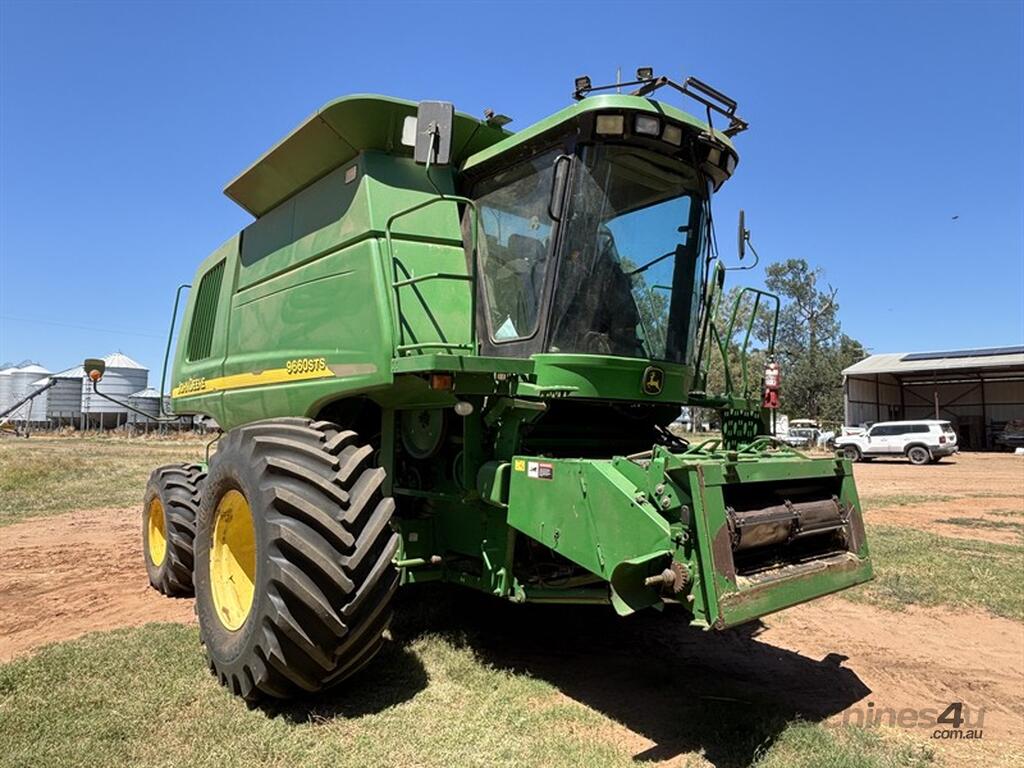 JOHN DEERE 9660STS WITH 936D FRONT, S/N: H09660S706611, 3277 seperator hrs, 4861 engine hrs, near new tyres, 3.6m wheel centres, just completed harvest, vendor has retired, well maintained machine that presents well, includes 36' front with cross auger and trailer, located Boggabri