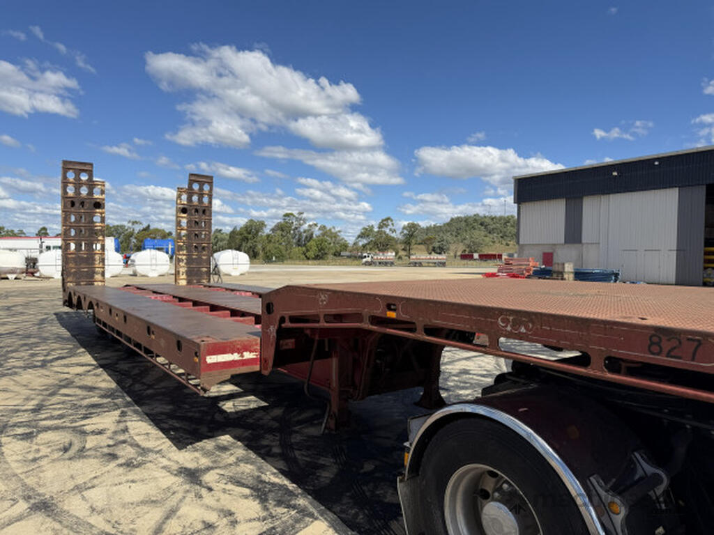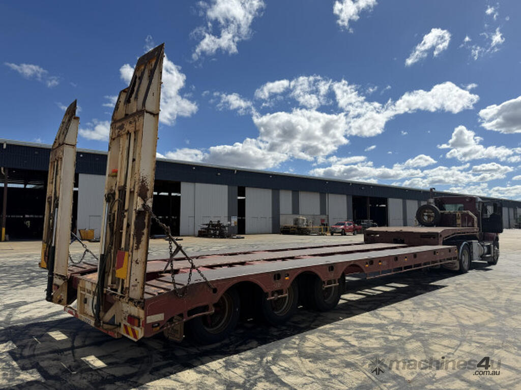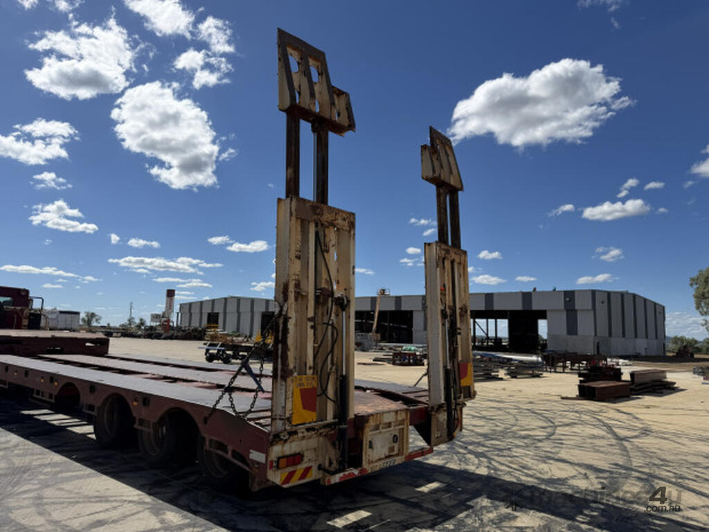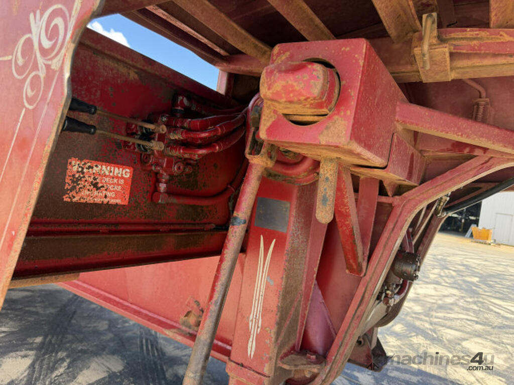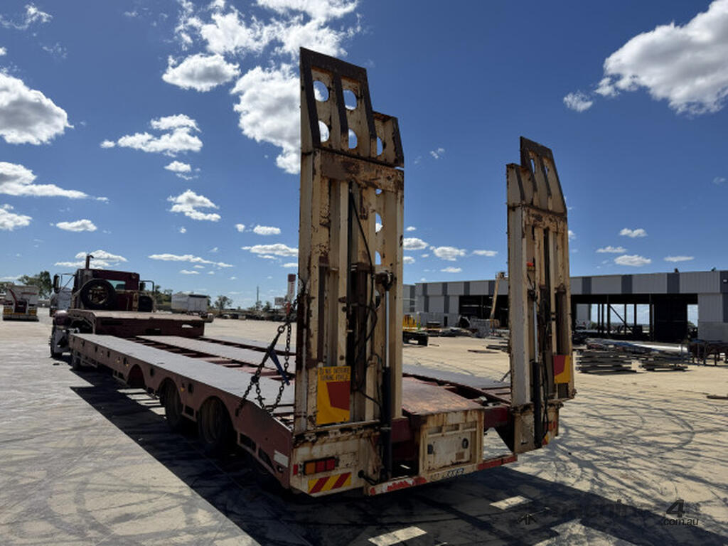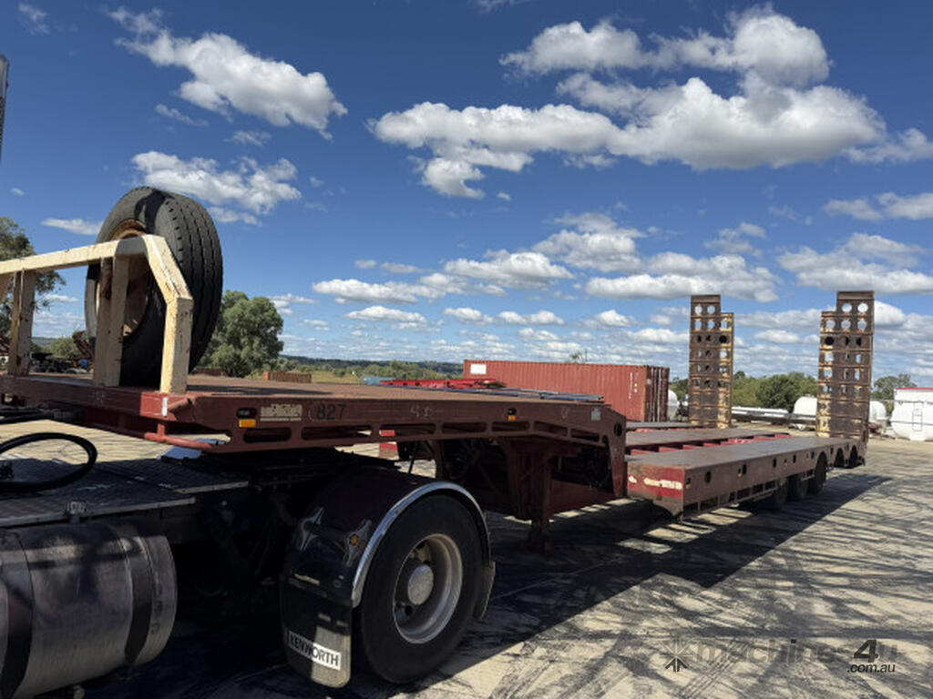 Description: 2005 JTB 45' Dropdeck 3.5m Widener, Good condition, Spring Suspension Spider Axles on 255 tyres. 1050mm bottom deck height. 4m Top deck and 9.7m bottom deck. 10' Hydraulic extendable ramps on beavertail using truck hydraulics. 3 Way container pins with stands. Hardox floor with tie downs in deck.