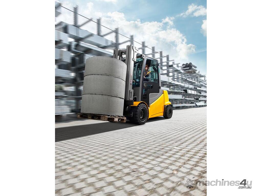 Our Series 5 electric four-wheel counterbalanced fork lift trucks with capacities from 2500 kg to 5000 kg offer the best features for the toughest indoor and outdoor applications as well as the use of a range of attachments. Moreover, our PureEnergy technology concept allows them to achieve best possible energy and cost efficiency combined with maximum performance.