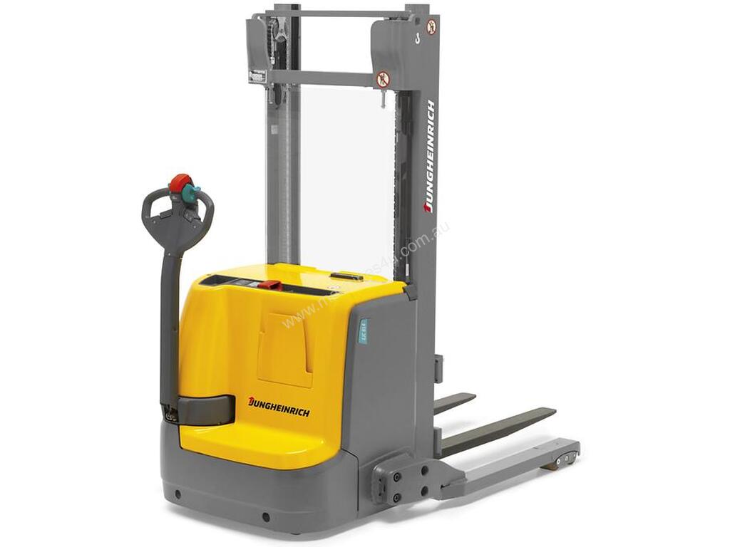 This pedestrian stacker is mainly designed for the flexible handling of special loads. With its laterally offset support arms and forged forks that can be lowered to the floor, the truck can lift loads by entering the load unit from below. This enables transverse Euro pallets or closed pallets to be picked up in a similar way to a counterbalanced forklift truck.