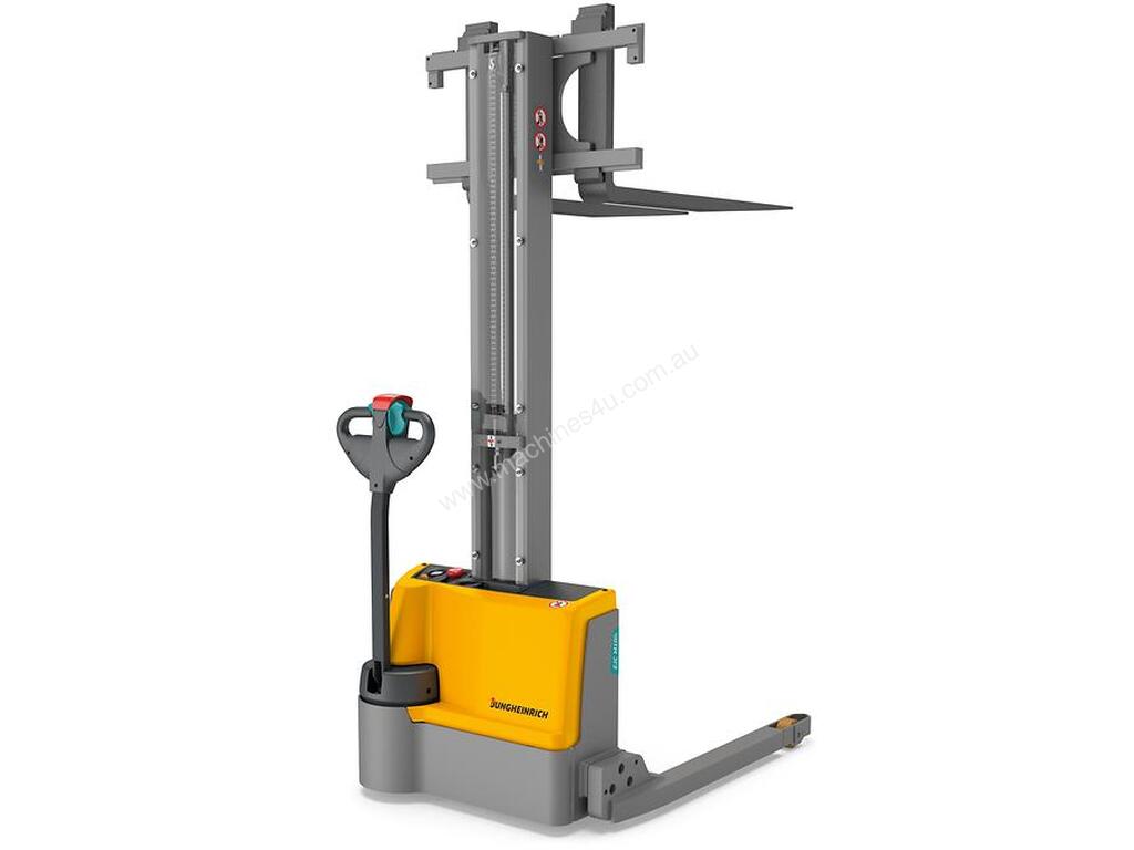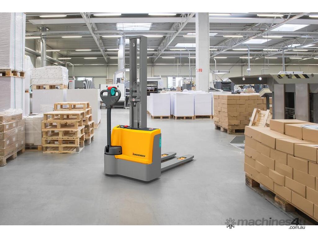 The mono mast, which is available in heights of 1540 mm and 1900 mm, makes the EJC M10 E/M10b E ideal for occasional picking as well as the stacking of pallets. The low frame height of the EJC M10 E/M10b E ensures that even shorter operators have optimum visibility of the fork tips. Its compact design and the short front-end length (l2) of just 465 mm also guarantee maximum manoeuvrability. The crawl speed button allows the truck to operate even in very confined spaces with the tiller upright.