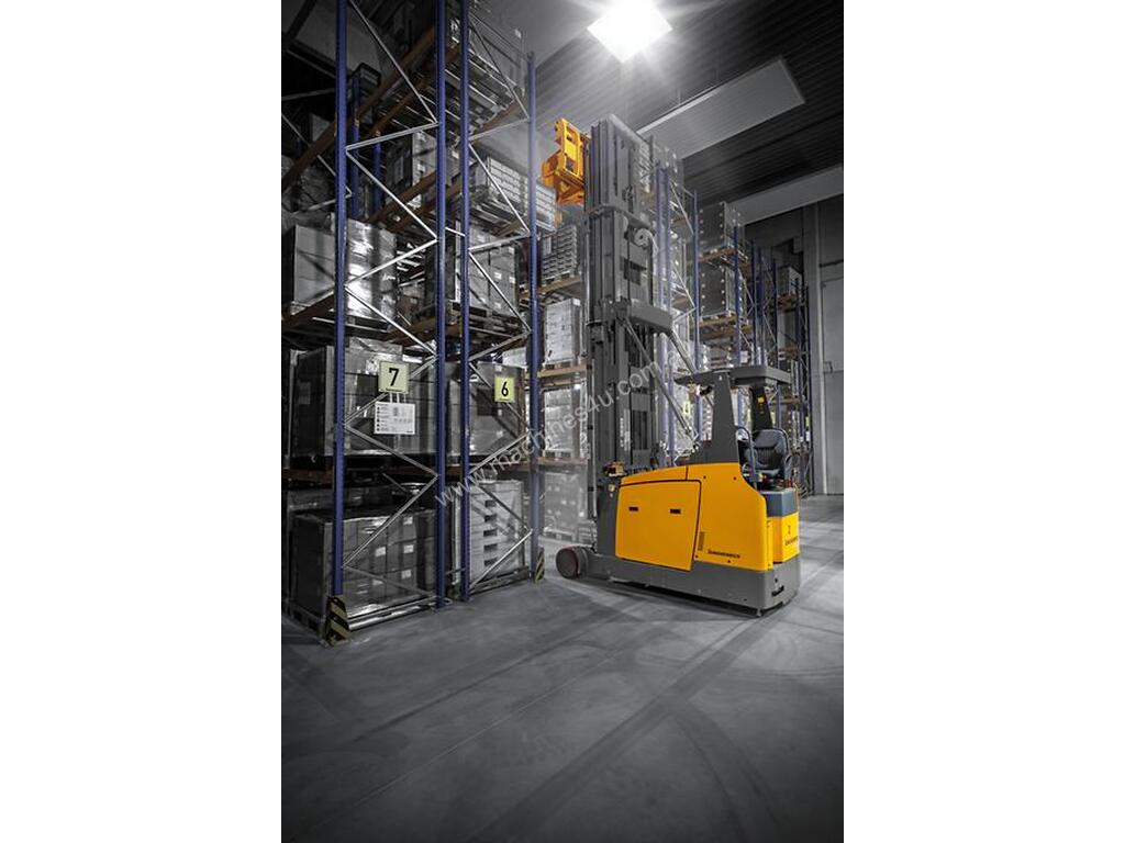 If the warehouse is planned as a fully automated warehouse from the outset, the man-down ETXa has advantages over the related man-up Model:, because energy is saved by doing away with lifting the operator's cab and its associated weight reduction.