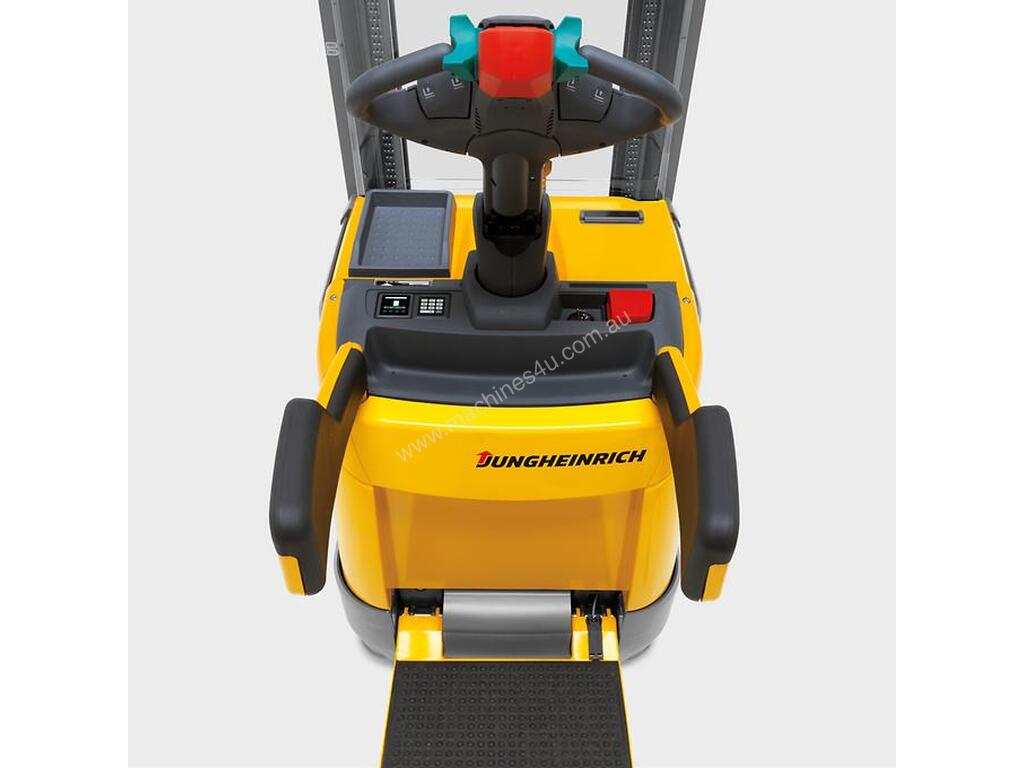 This electric pedestrian-controlled trucks combine the manoeuvrability of a pedestrian stacker with the comfort and speed of a ride-on truck.