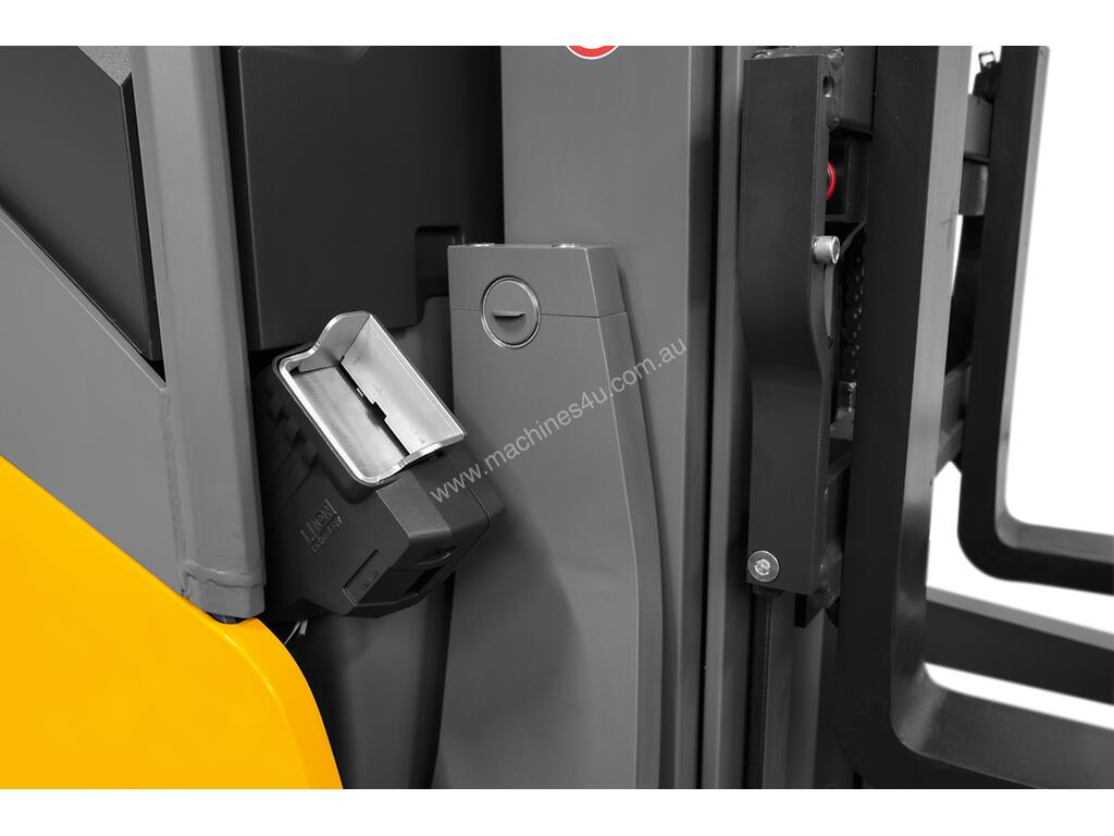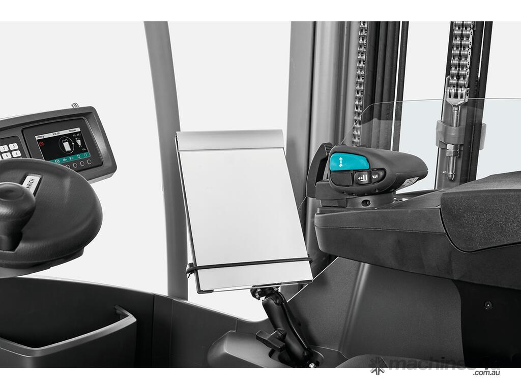The agile and innovative ETV 216i reach truck is the ideal partner for effective and safe stacking and retrieval operations as well as the provision of pallets for order picking. The integrated lithium-ion battery, which enables a complete redesign of the truck, is extremely compact, allowing highly flexible use thanks to its boost and interim charging capabilities – even in multi-shift operations (with the driveperformance package). Fast lifting and pushing speeds significantly increase the throughput of pallets compared to conventional reach trucks. In addition, the operator has an ergonomic workstation which offers a spacious cab, optimal all-round visibility and ideal operating conditions. The innovative construction of the ETV 216i creates the basis for maximum ergonomics and safety. Smart assistance systems such as positionCONTROL or operationCONTROL and a tailor-made operating concept enable fatigue-free, productive operations.