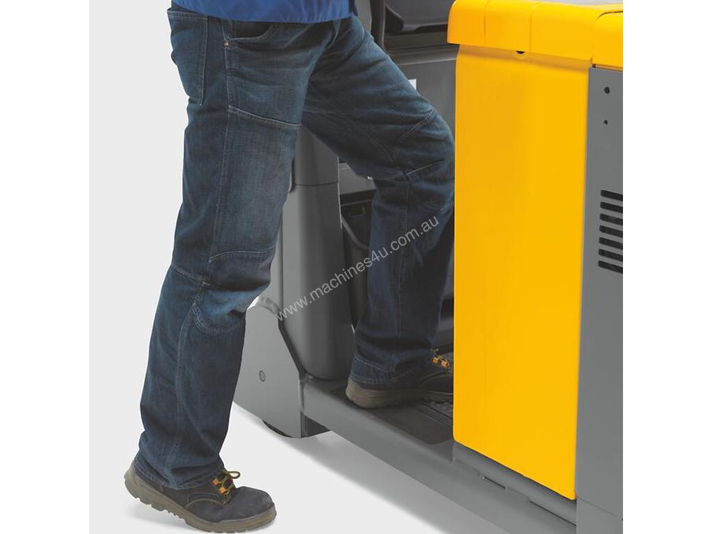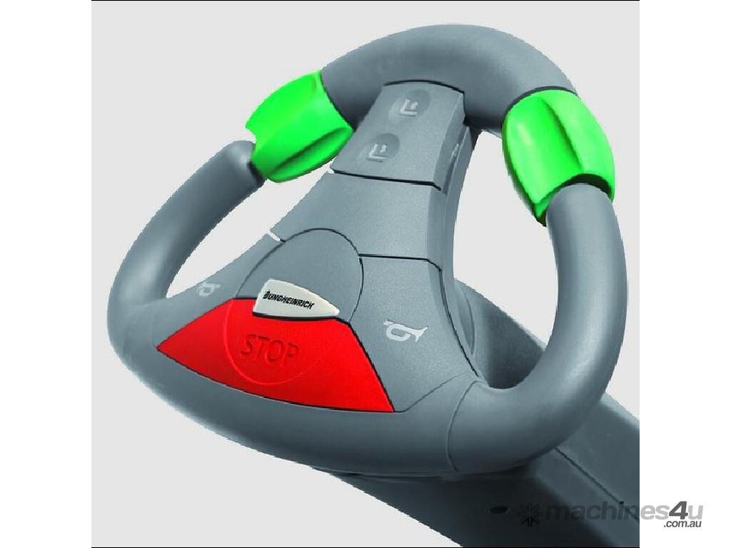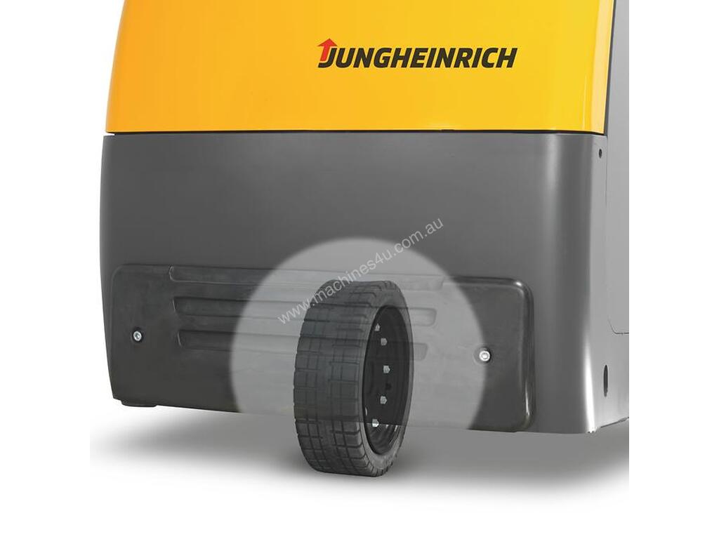 High productivity features include the low stand-on platform and the short distance from the operator position to the load. The EZS works well in tight areas. Its turning radius is so small that the operator will feel that they are turning on the spot. The jetPILOT steering wheel, supportive backrest and curveCONTROL automatic speed reduction, all provide comfortable operation when cornering.