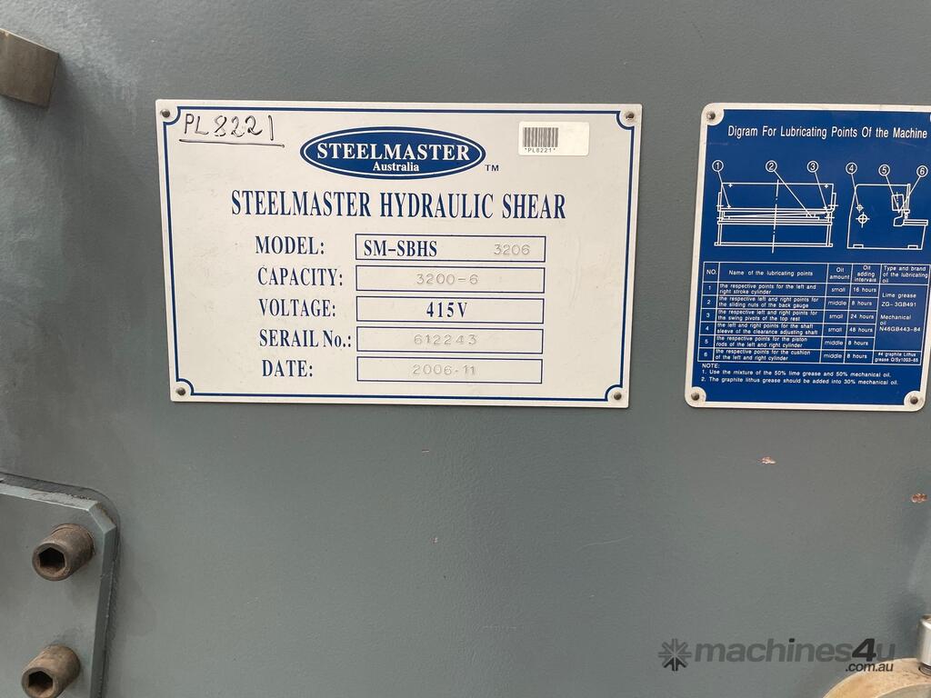 STEELMASTER GUILLOTINE 3200 X 6.0 MM Capacity. (Mild Steel)