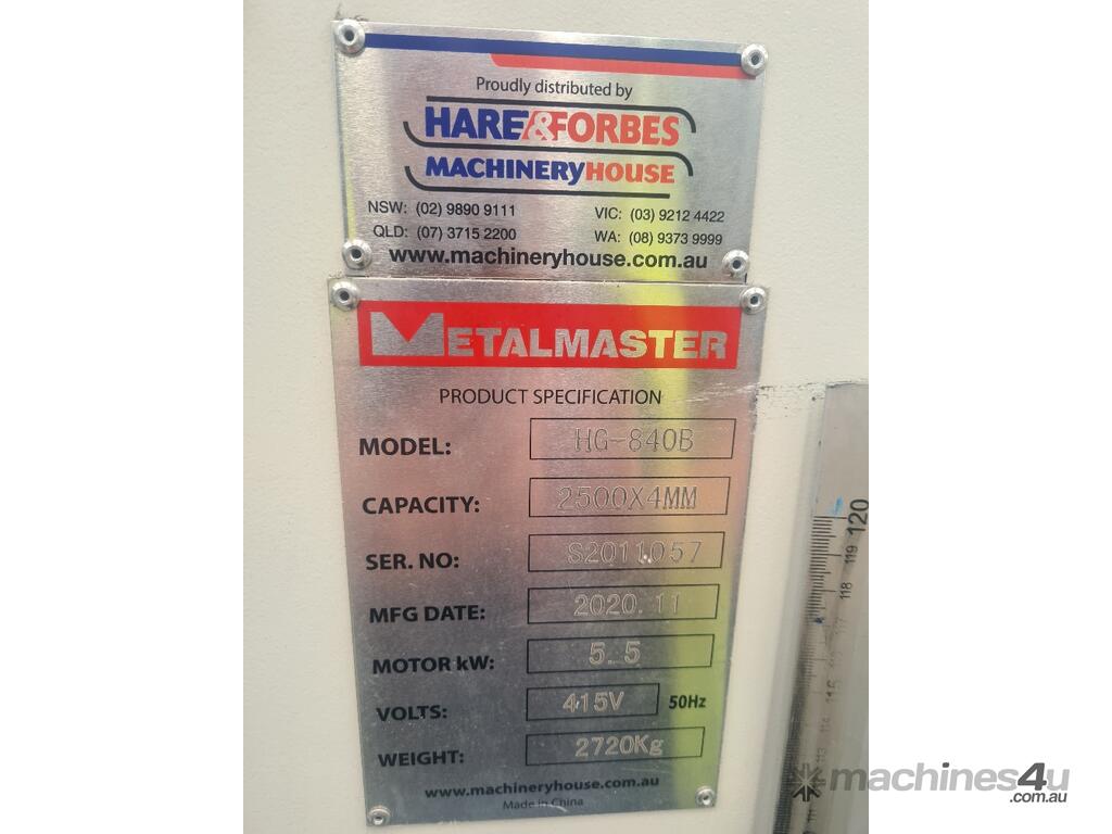 USED - METALMASTER HG840B Guillotine. 2500 x 4mm mild steel capacity.