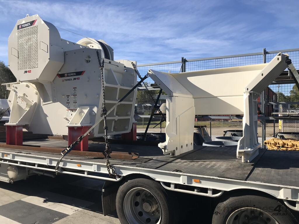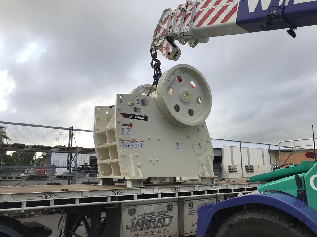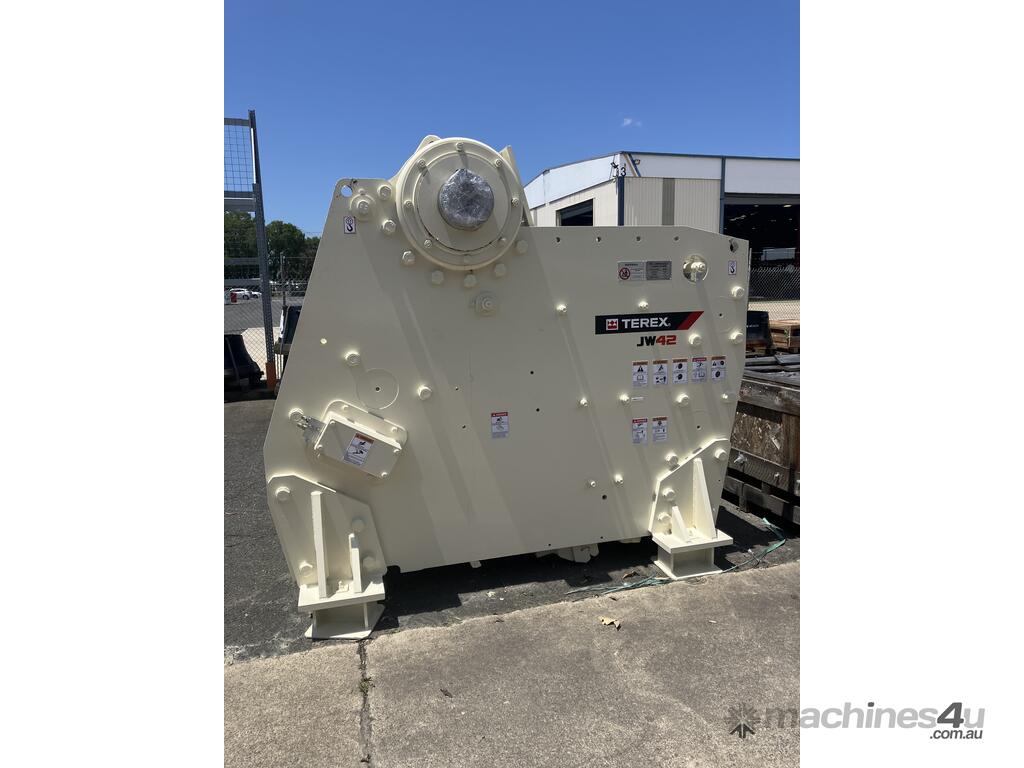 JW42The Cedarapids JW42 Static Jaw Crusher is designed for demanding applications like mining, quarrying, and recycling operations. The JW42 Jaw Crusher is a single-toggle crusher with a 30” x 42” feed opening that delivers aggressive crushing action and high production capacity. Engineered with a hydraulically actuated wedge system, the JW42 allows for quick and precise closed-side setting adjustments ranging from 4” to 7” to accommodate various material sizes and processing requirements. Powered by a 150 hp motor, this crusher is built for efficiency and reliability, utilizing a high-strength bolted mainframe design and heavy-duty components for long service life. With a complete range of jaw profiles available, the JW42 ensures versatility and optimal performance, whether installed in a portable, mobile, or static plant configuration.