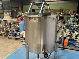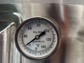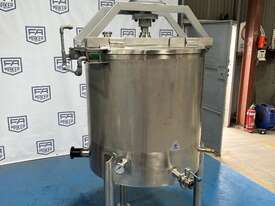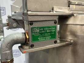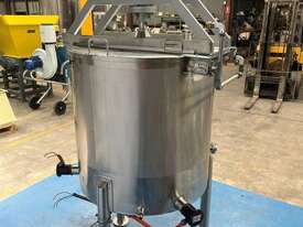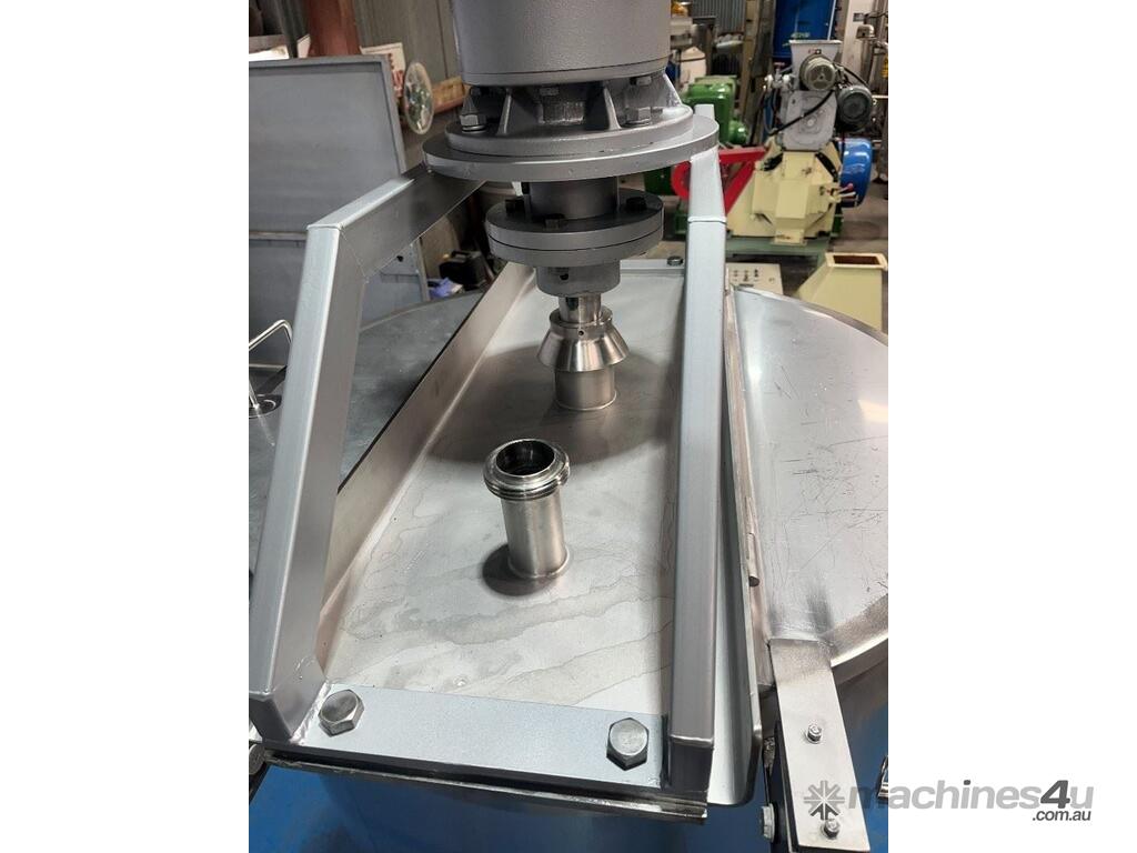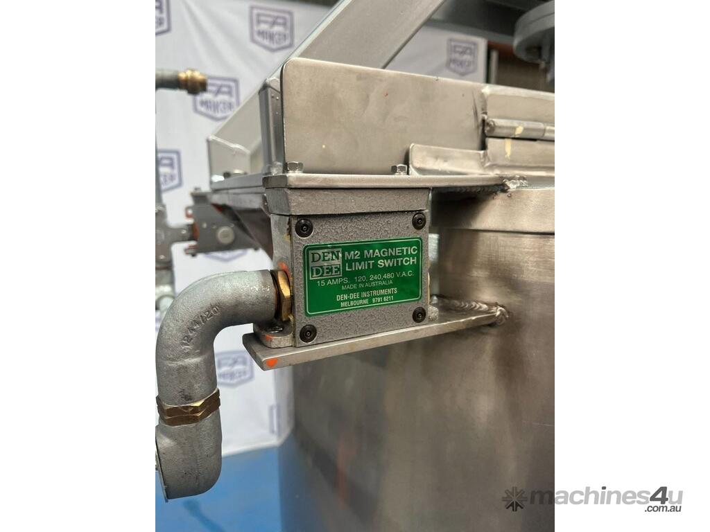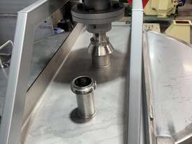 Flat bottom to a 1.5 inch outlet with a ss butterfly valve.