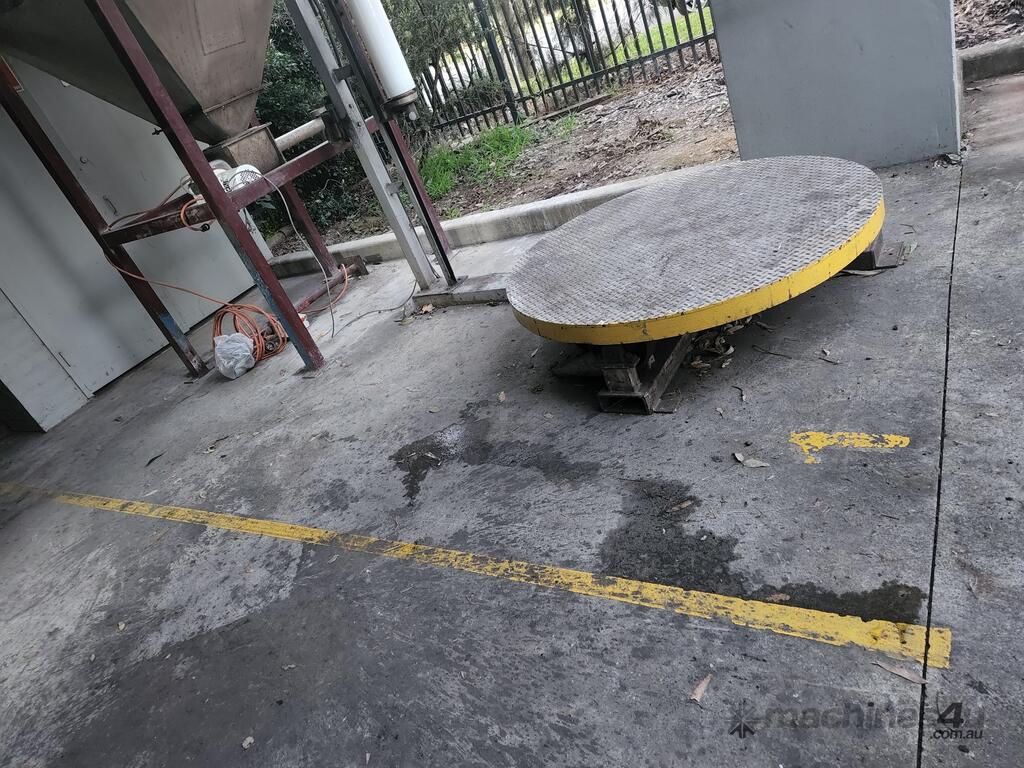 Manual pallet wrap machine that can be moved with a fork lift to any location.