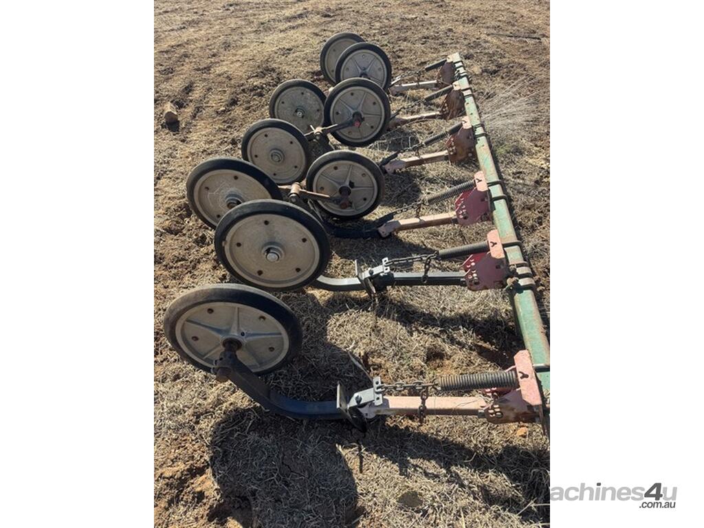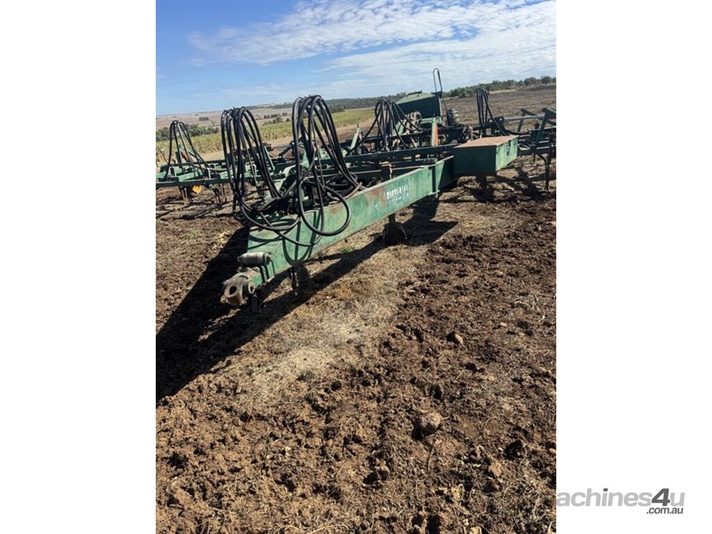 Janke 40' Planter & Seeder. 40ft, 32 tyne, Simplicity cart rollers good, needs straightening underneath one box from rock, comes with eagle monitor, has press wheels not on machine, needs hoses. Located North Star area. Available at MRE Auctions. Contact Grady Sinclair for more information.